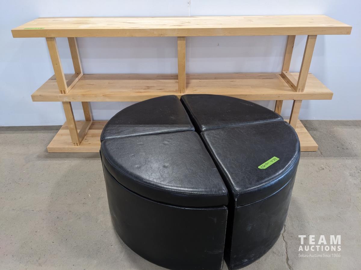 1378 3 Tier Wooden Shelf and 4 Piece Round Ottoman with Storage