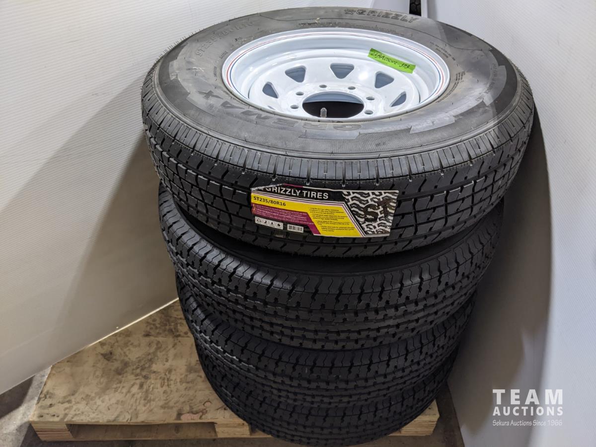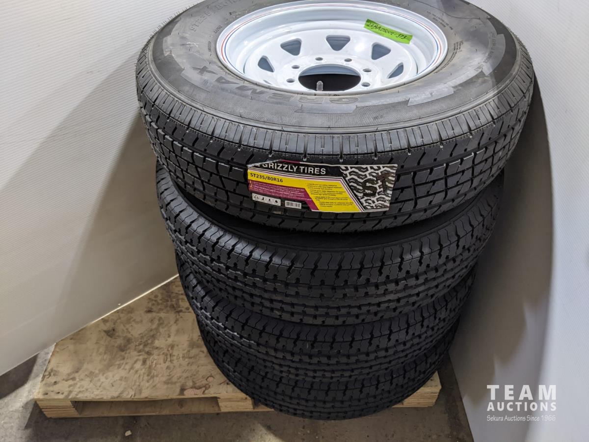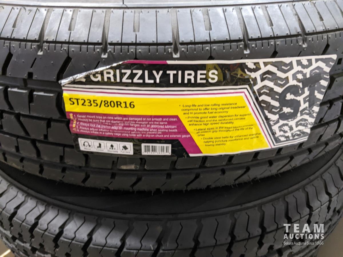 1221 (4) Grizzly ST235/80R16 Tires on 8 Bolt Rims (Unused)