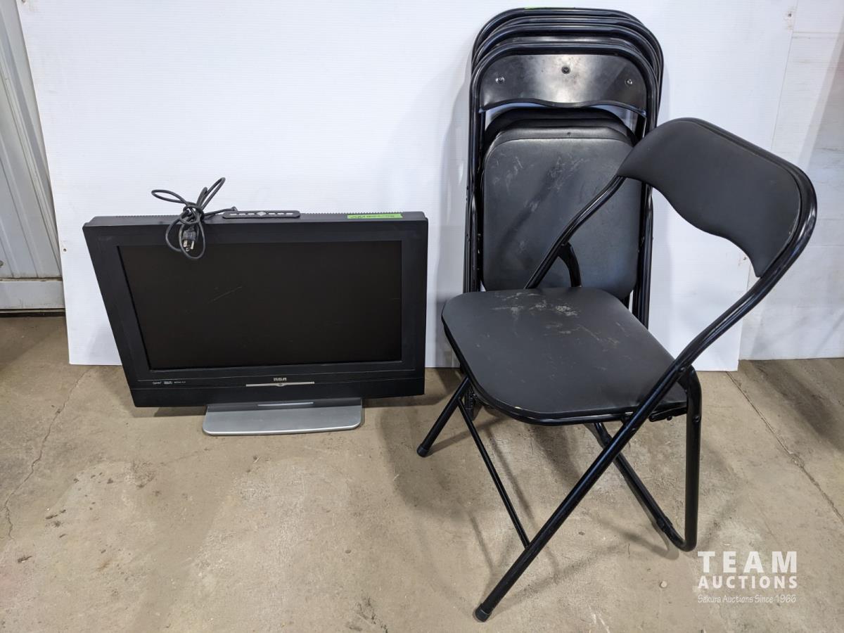 1119 (5) Folding Chairs and 26 Inch RCA TV