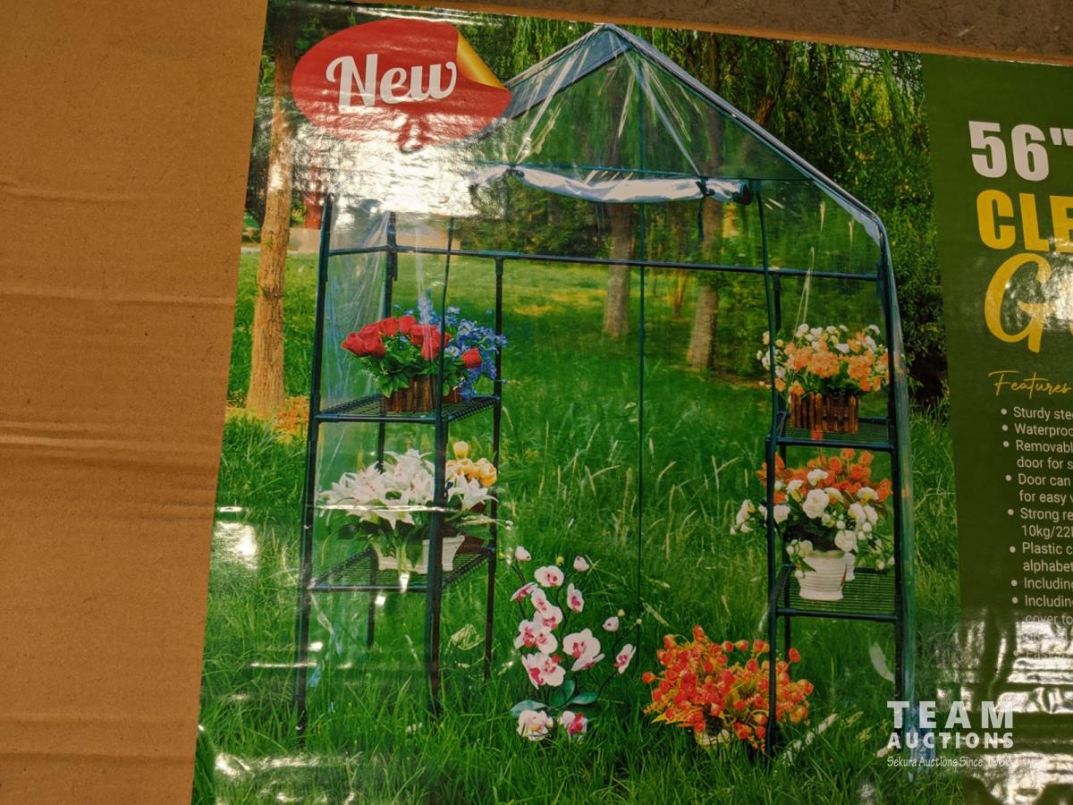 56 inch w x 28 inch d x 76 inch H, steel pipe frame, rollup door, wire shelves