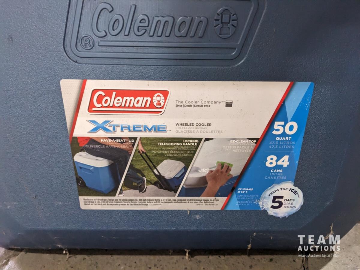1107 Coleman Wheeled Cooler and Sunbeam 18 Inch Fan