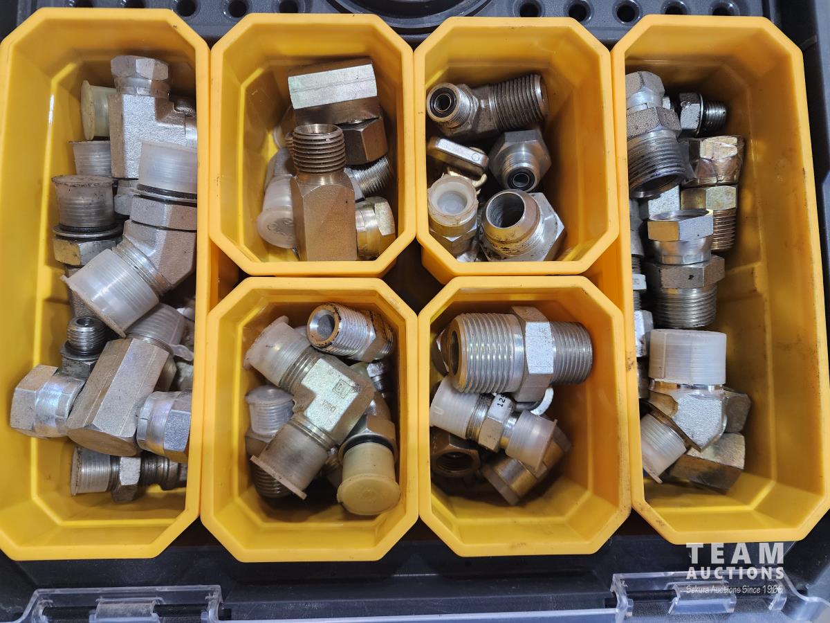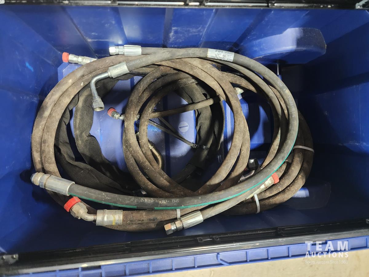 Tool box/organizer, miscellaneous hydraulic hoses and fittings, gauges
