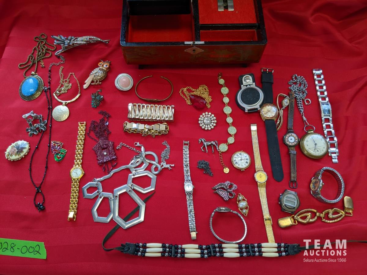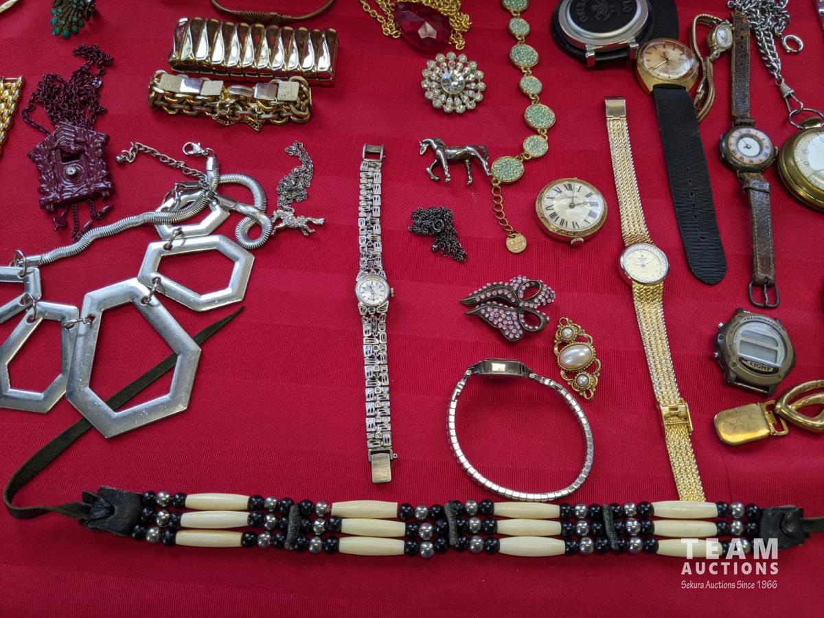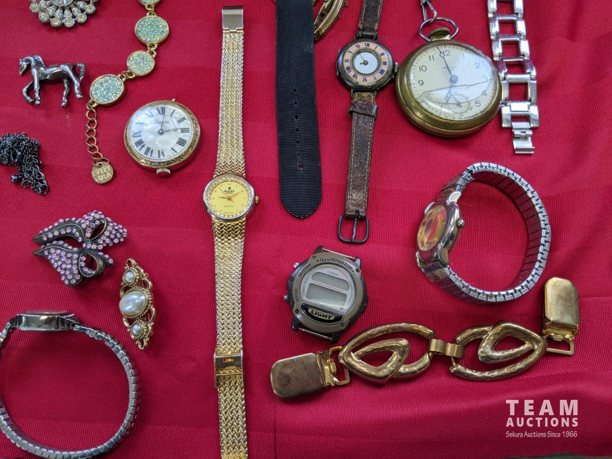 Watches, bracelets, necklaces, rings, earrings, pins/brooches