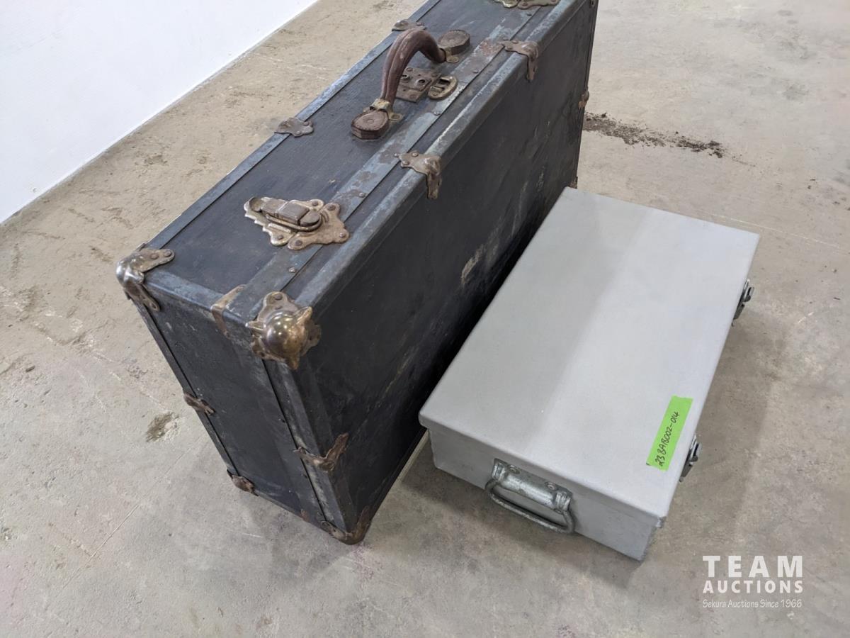 1128 Lion Brand Antique Trunk and Aluminum Box