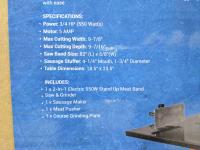 3/4 HP, sausage attachment, grinding plates