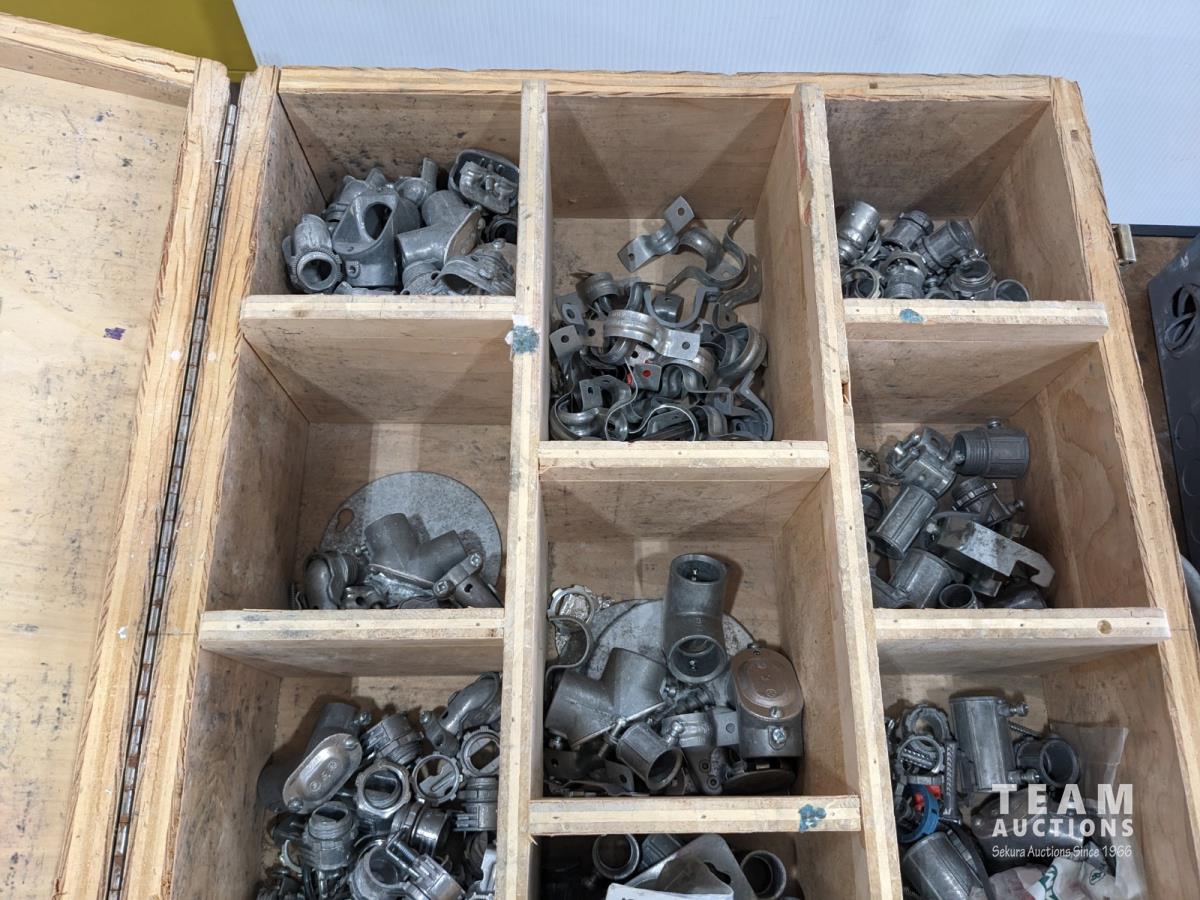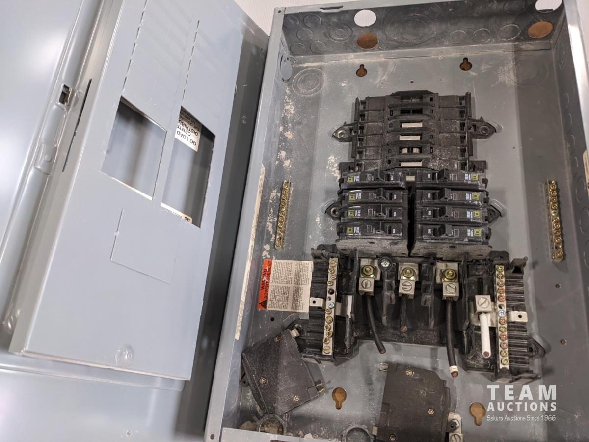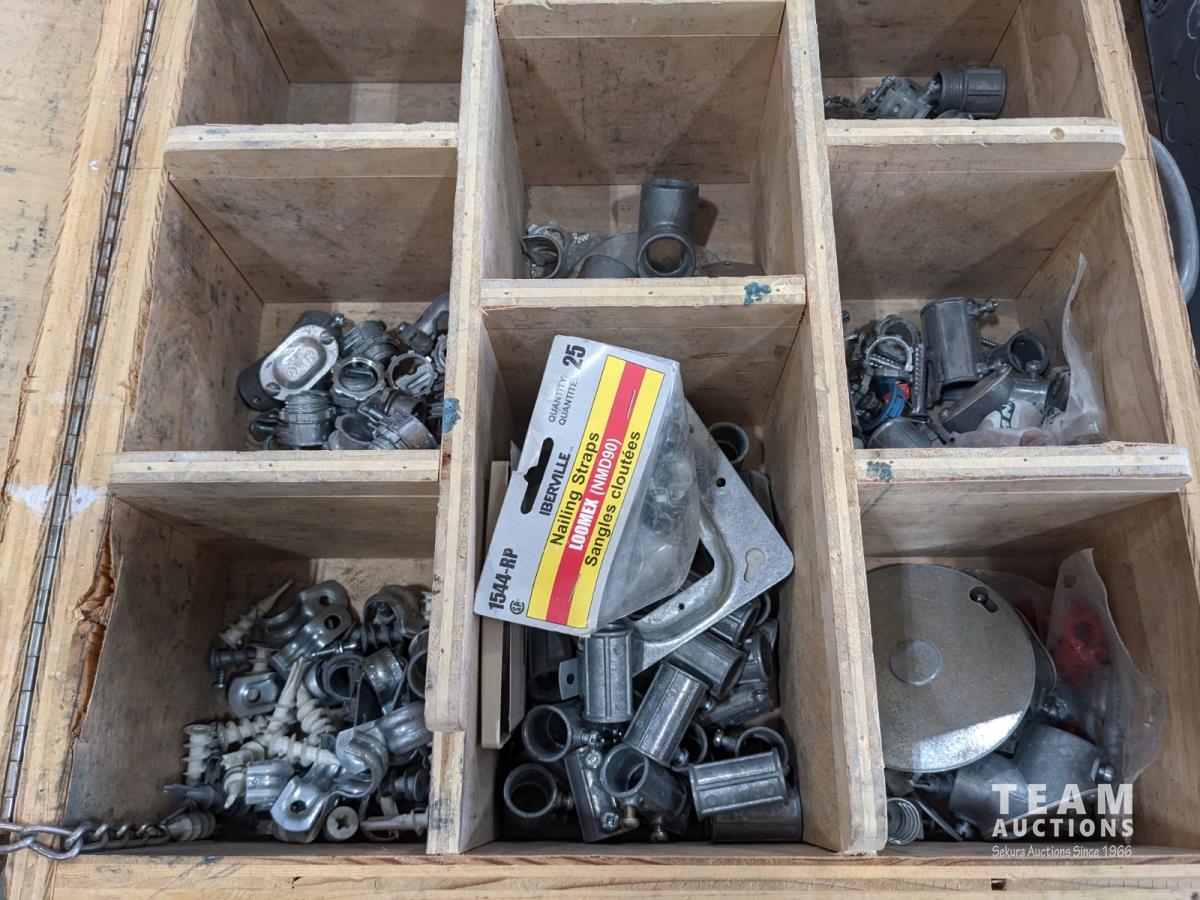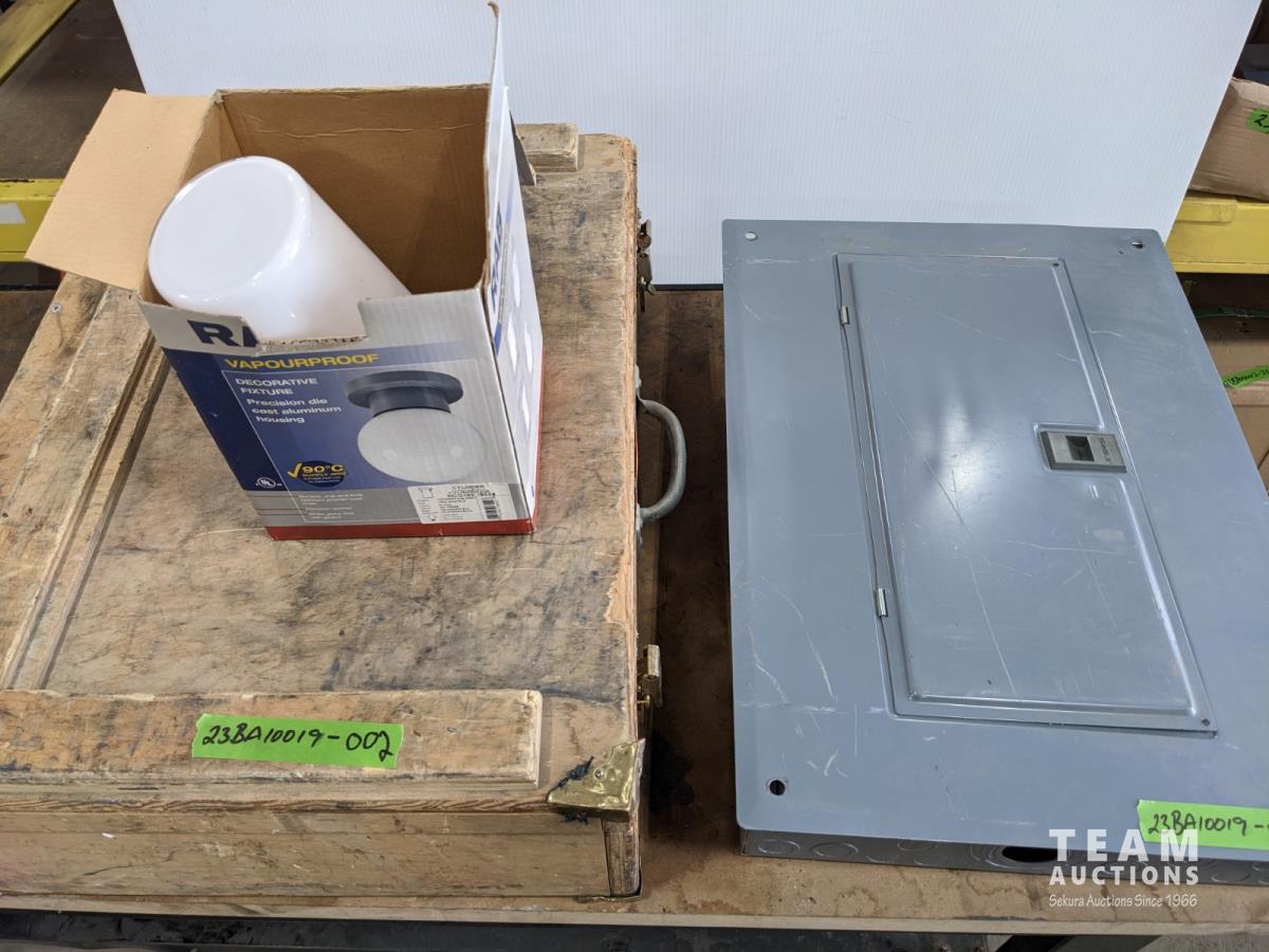 1582 Qty of Misc Electrical Fittings, Electrical Box with Breakers and Light Fixture