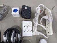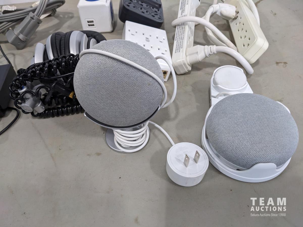 (2) Google nests, Sony Stereo headphones, surge protectors and power cords