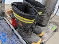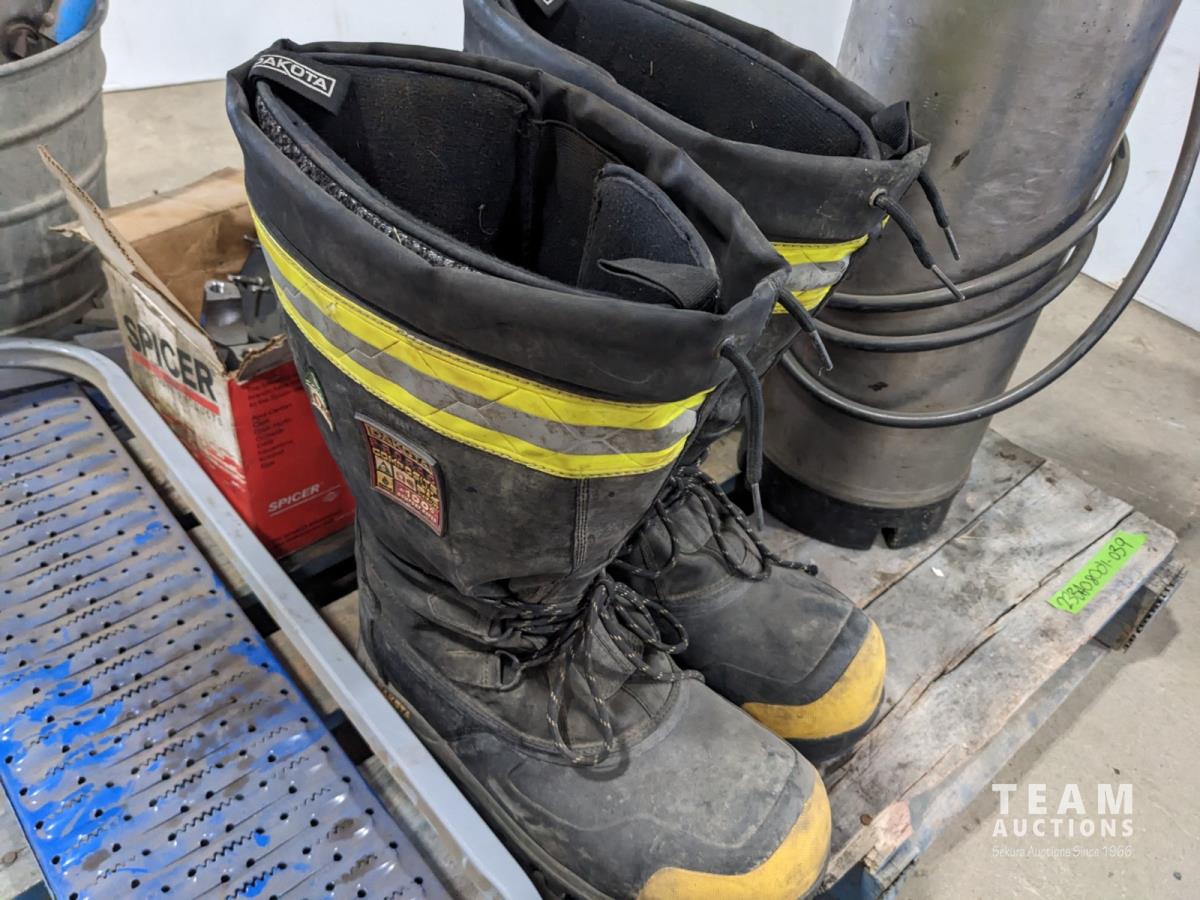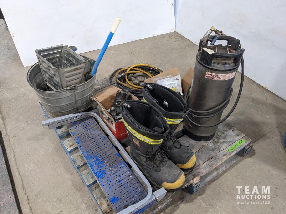 Pressurable parts washer, OTC wheel step, Size 12 Dakota winter boots, battery cable, mop pail, assorted air fittings