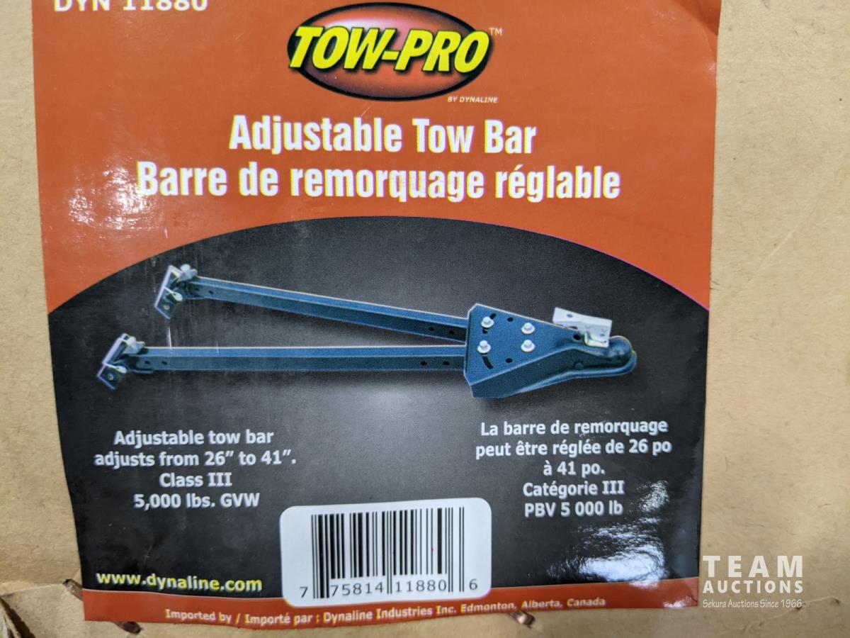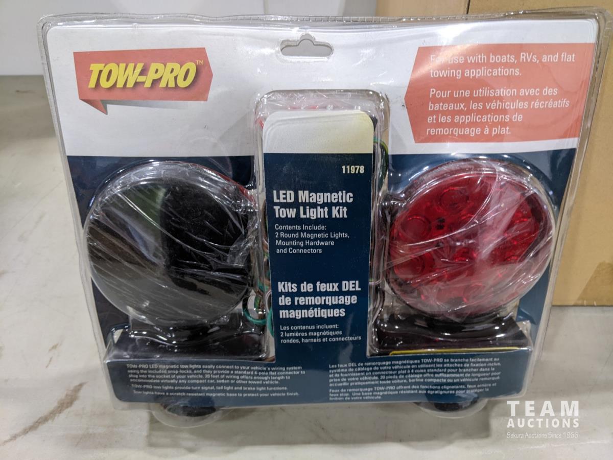 (10) 36 inch receiver tubes, (5) adjustable tow bars, (20) 3/8 inch x 6 ft security cables, (10) magnetic tow light kits, (80) foldable funnels, (10)