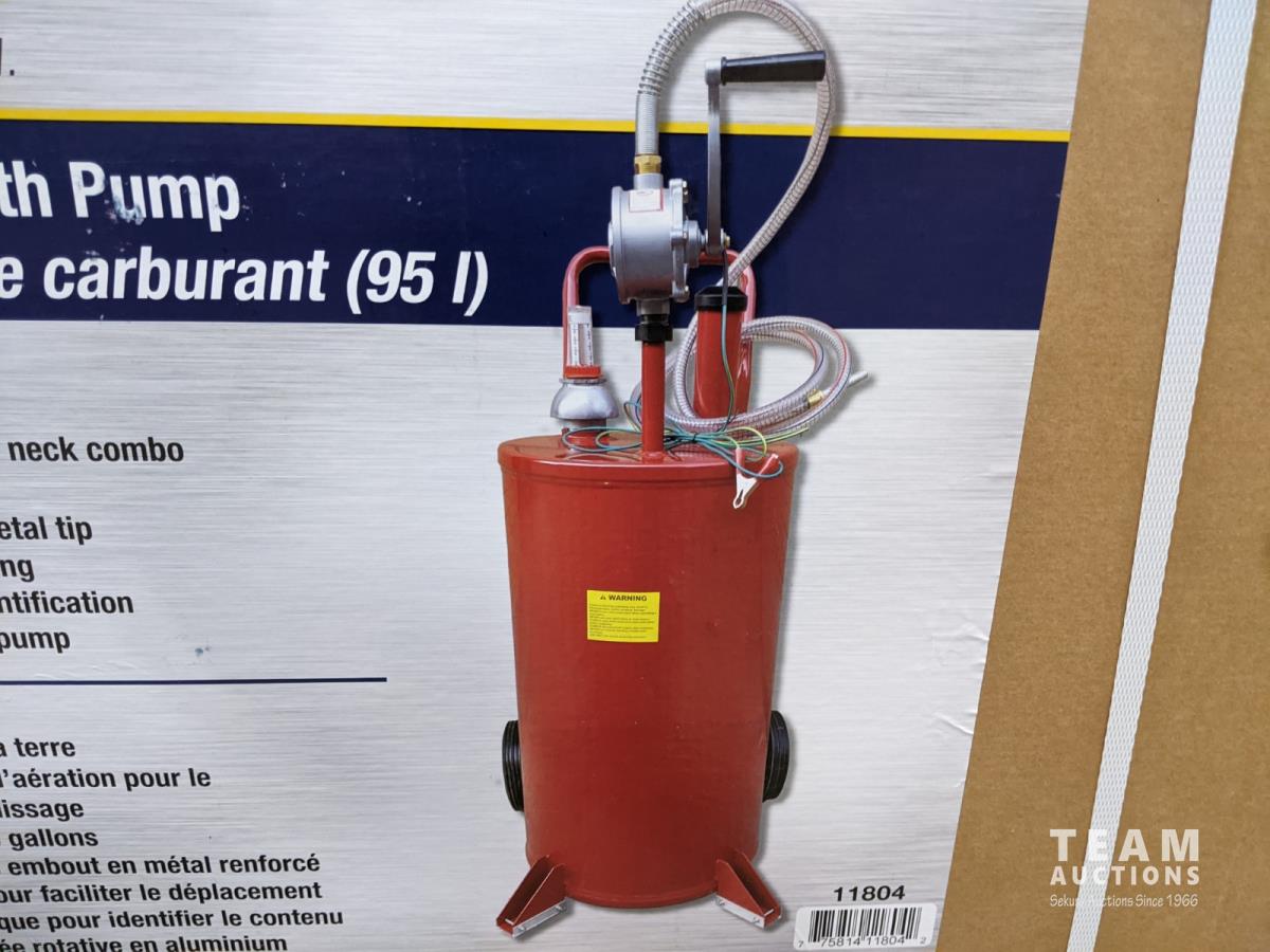 (80) foldable funnels, (20) 3/8 inch x 6 ft safety cables, (2) fuel pumps, (30) 3/8 inch x 3 ft safety cables, portable 12v electric winch, 25 gallon fuel cart
