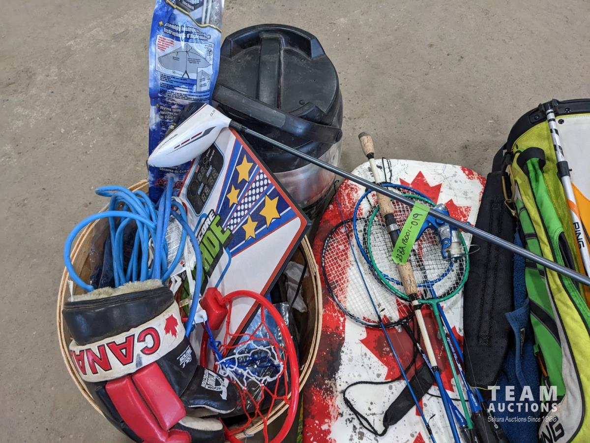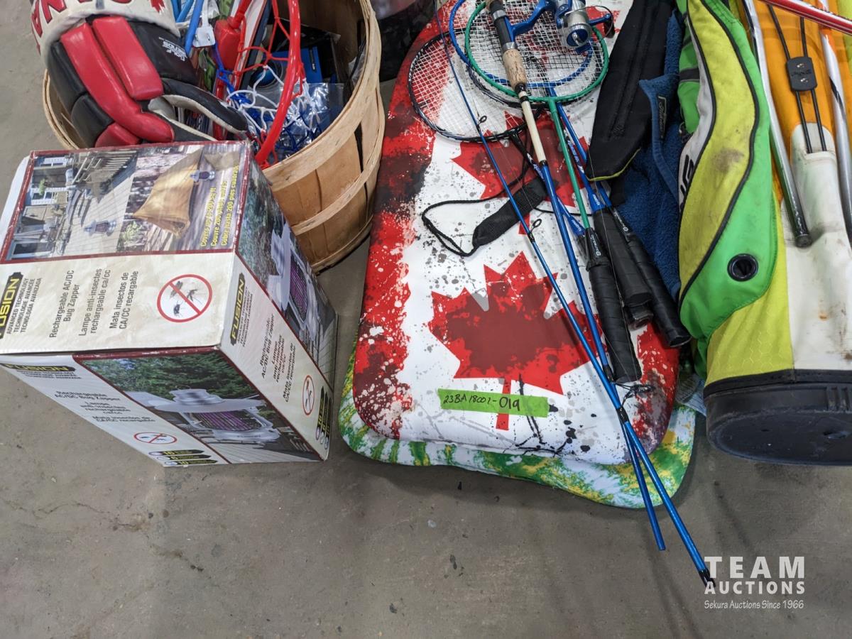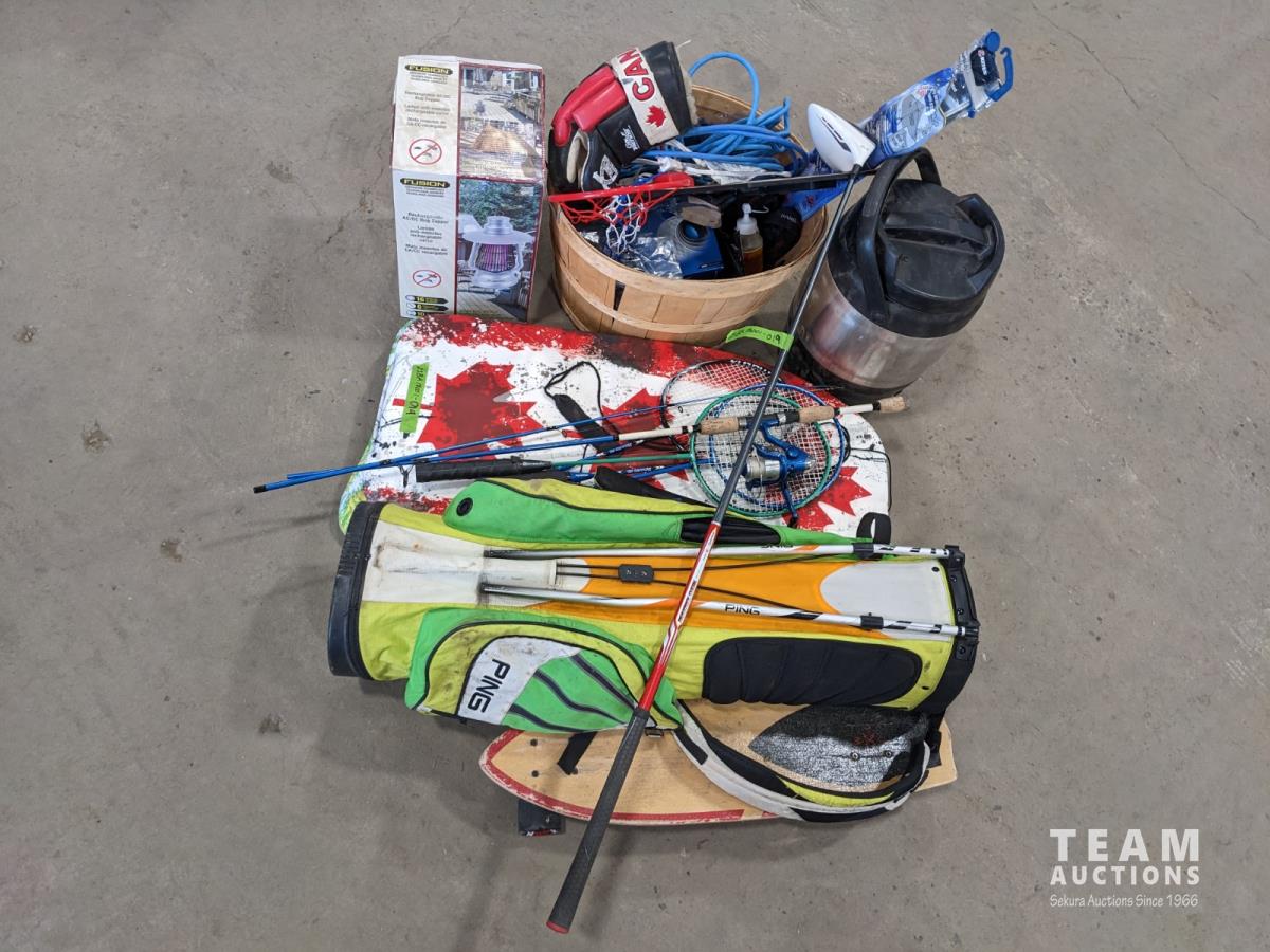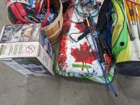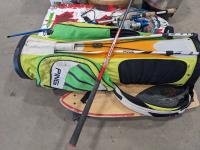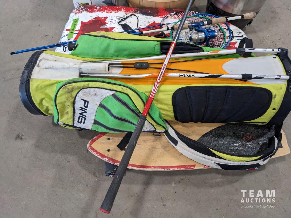 Taylormade Burner golf club, skateboard, fishing rod, boogie boards, golf bag, Bubba keg