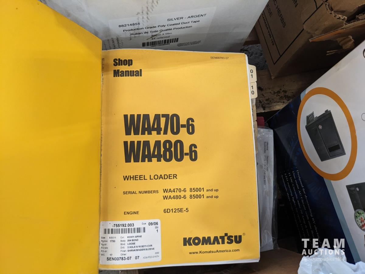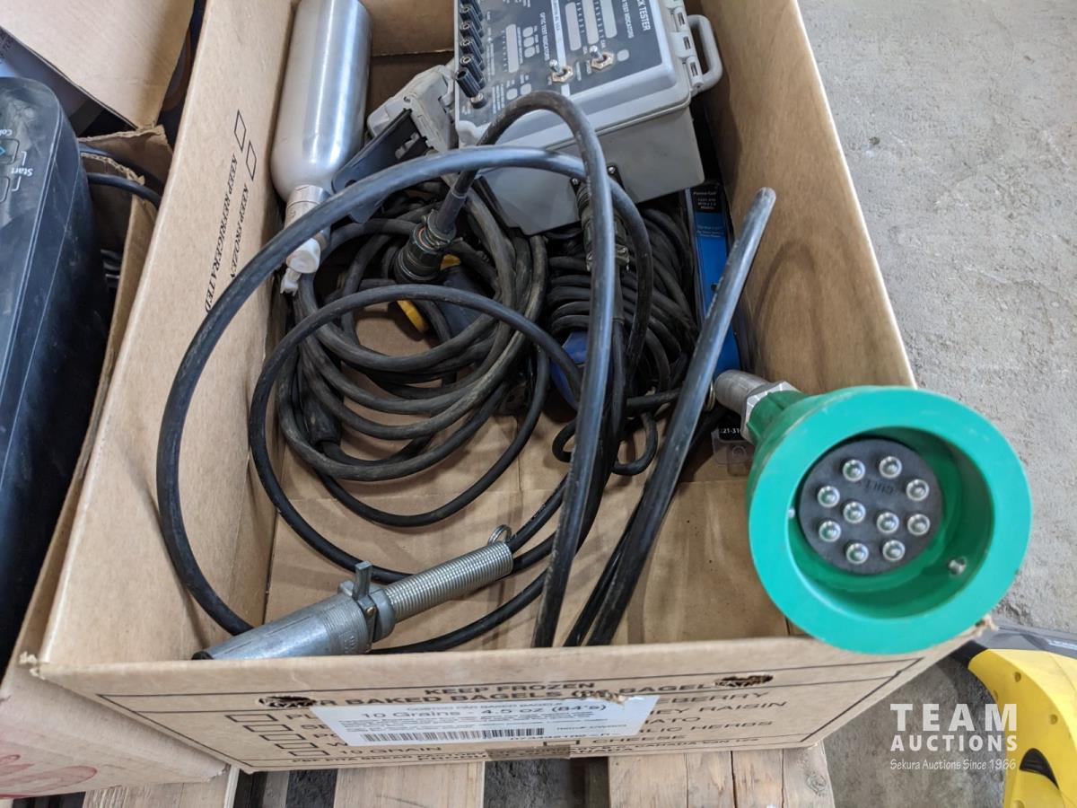 Scully universal truck tester, trouble light, spill pads, qty of shop manuals, and clip boards