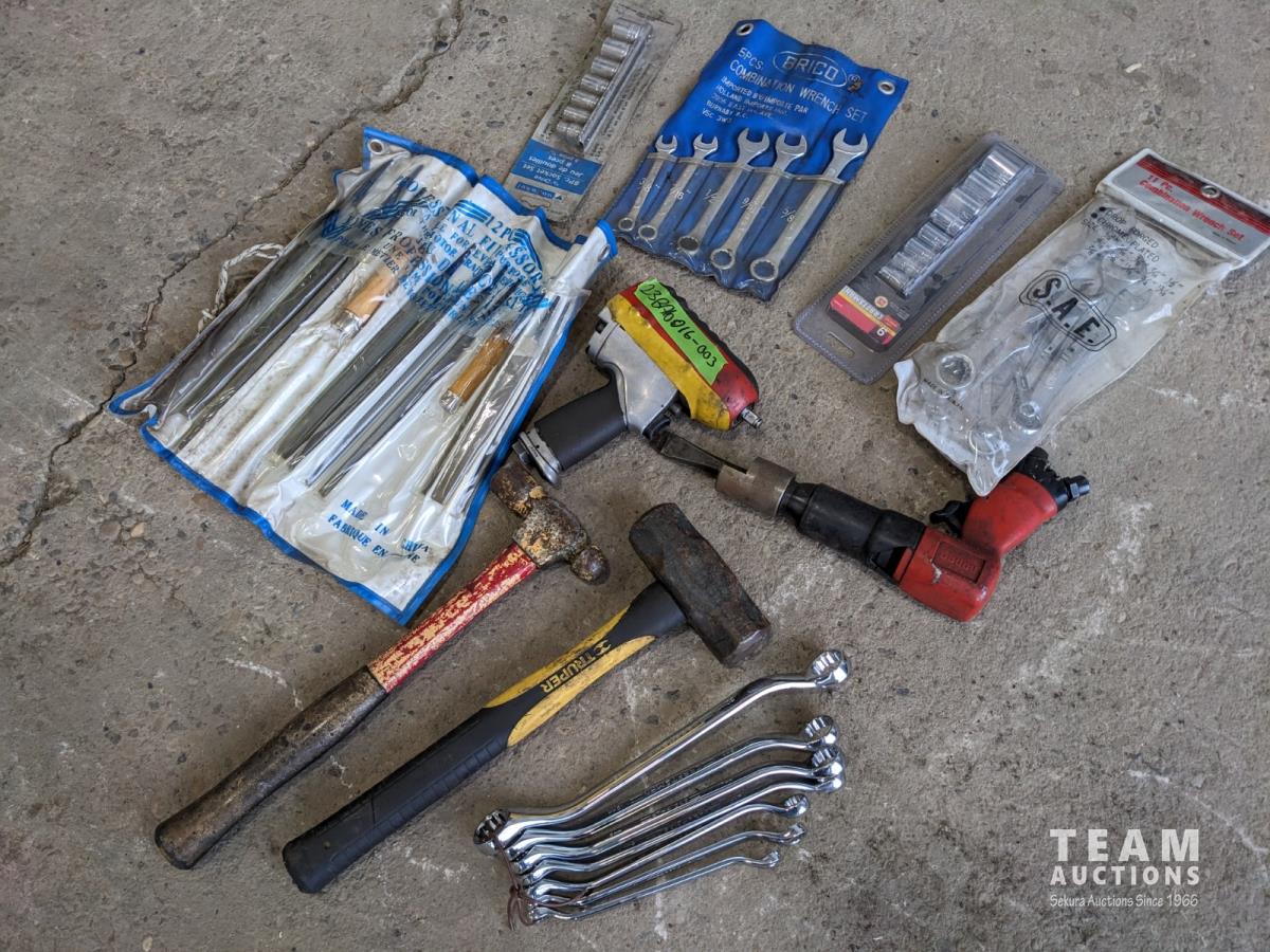 File set, wrenches, hammers, air chisel, sockets