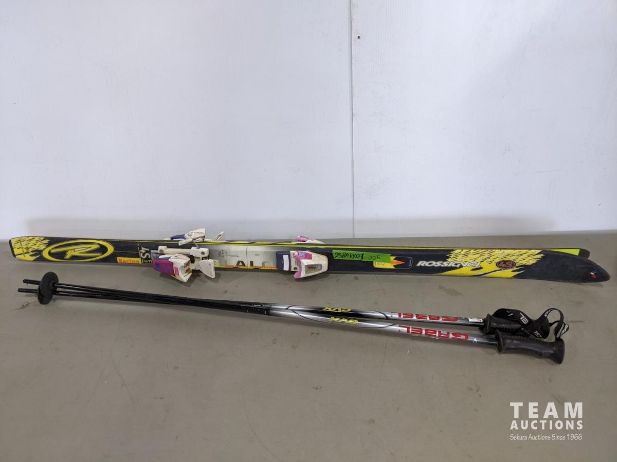 1453 Rossignol Junior 150 cm Downhill Skis and Poles