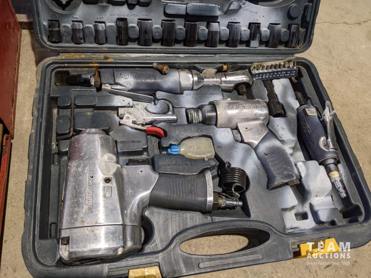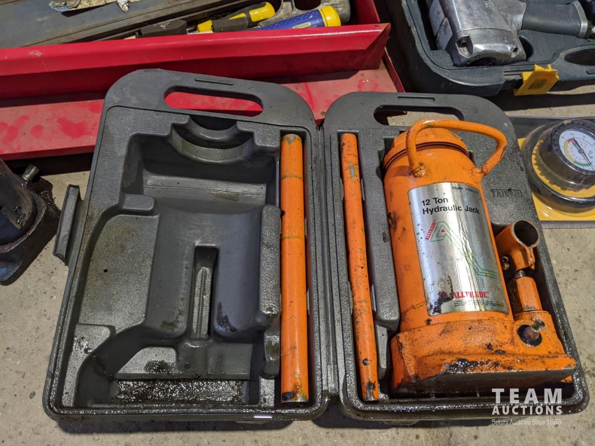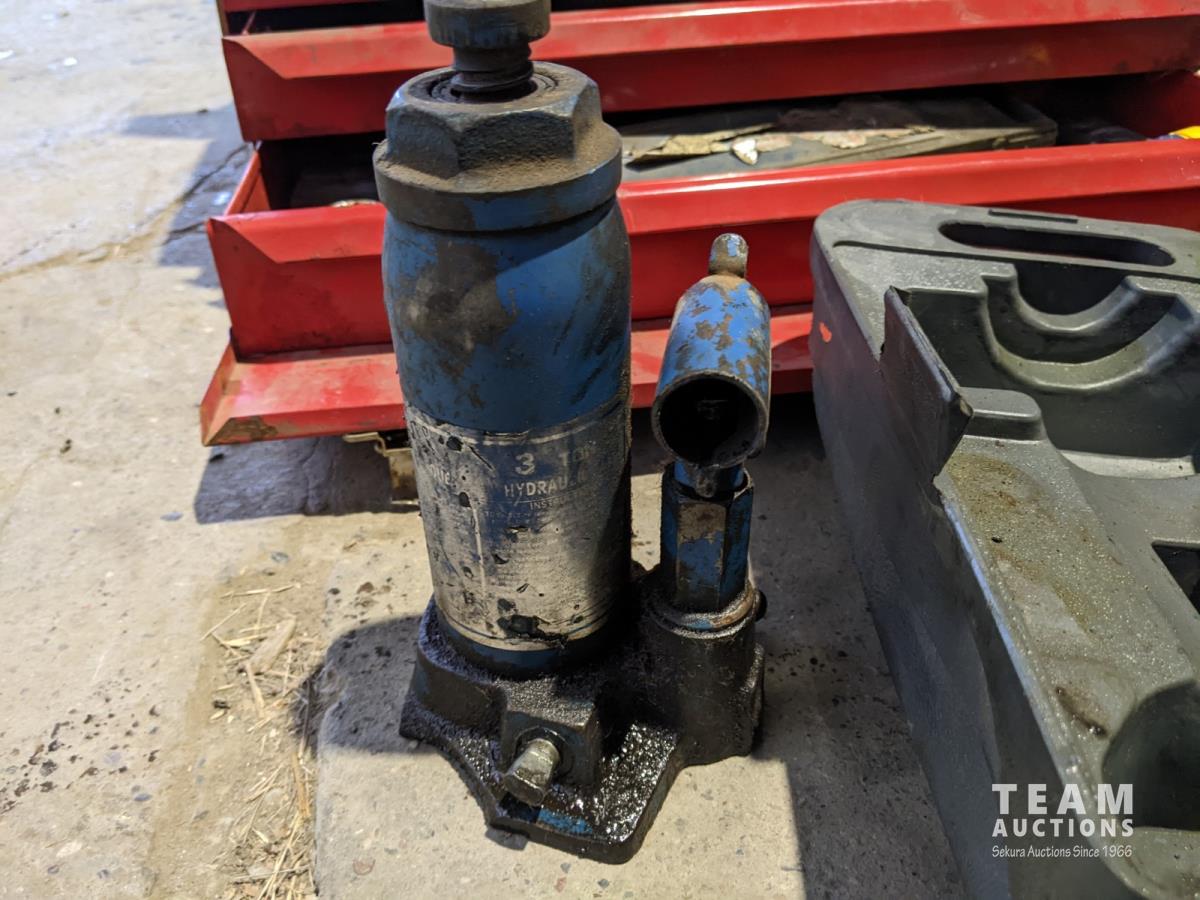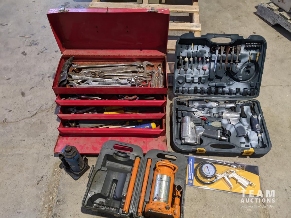 1176 Tool Box with Assorted Tools, Mastercraft Air Tool Kit and 12 Ton Hydraulic Bottle Jack