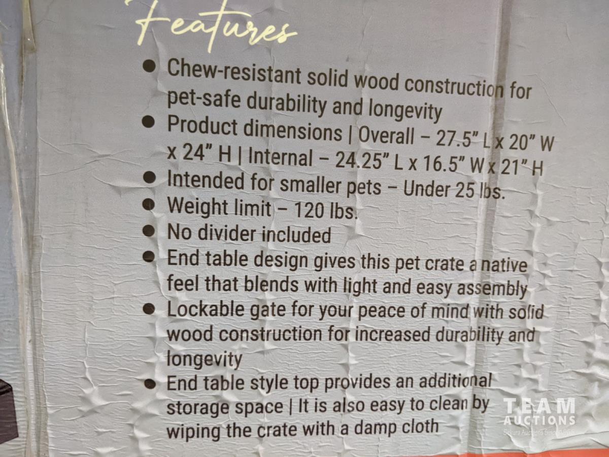 27.5 inch l x 20 inch w x 24 inch h, for pets under 25 lb, end table design