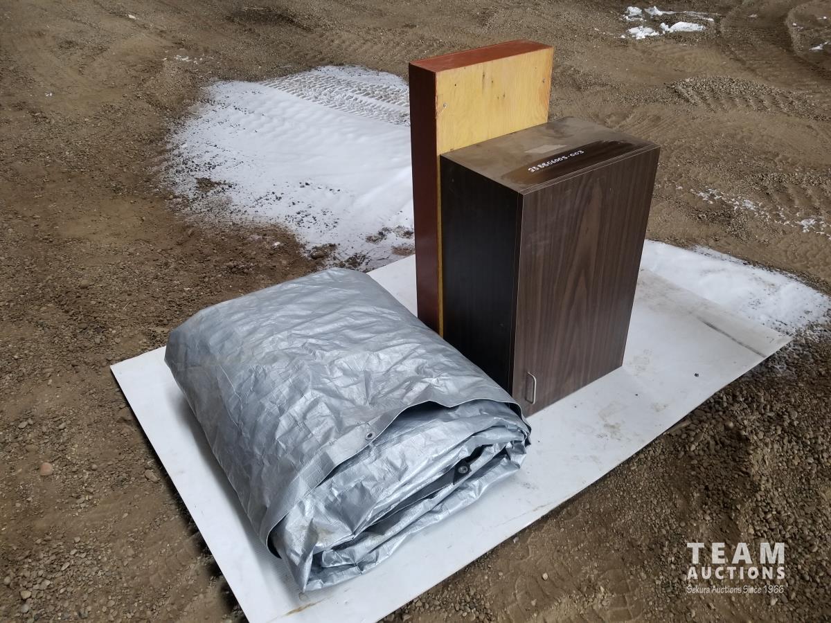 10 18 Ft X 14 Ft Tarp & (2) Small Wooden Cabinets
