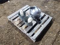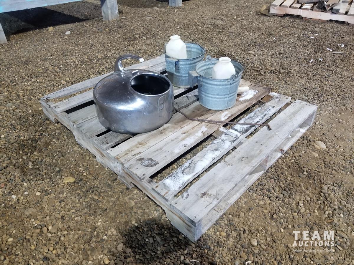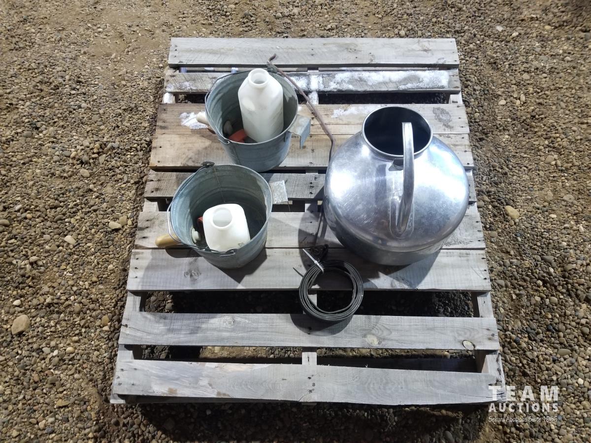 Milk bucket with strap for milk machine, (2) buckets, (2) calf feeding bottles