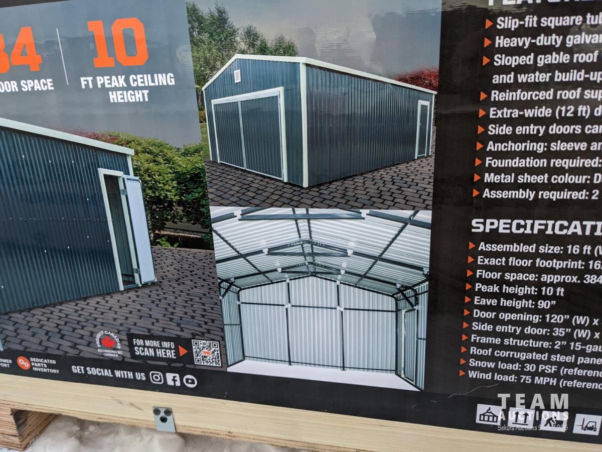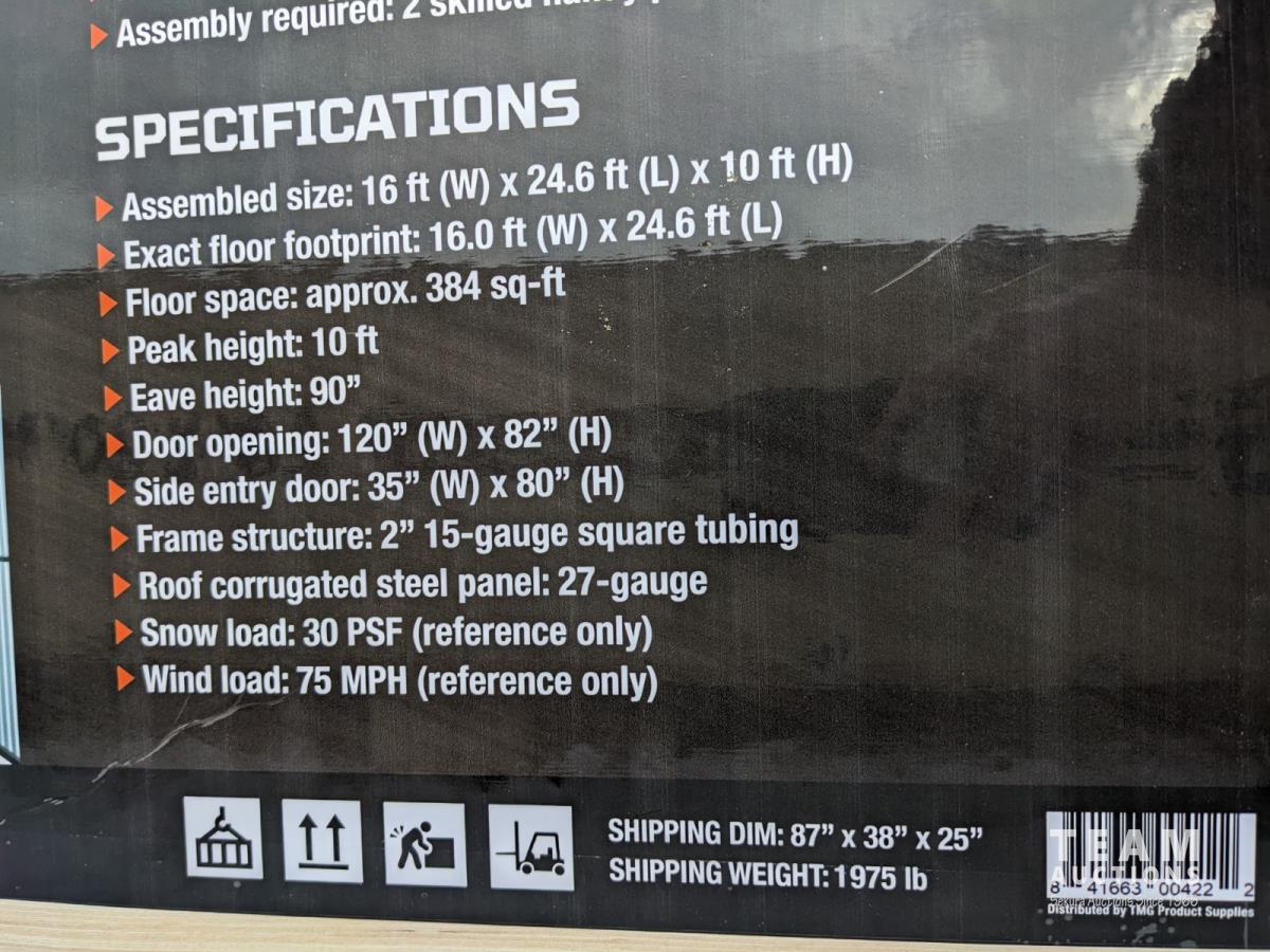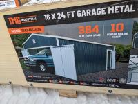 91 TMG Industrial 16 Ft X 24 Ft Metal Garage Shed with Double Front Doors (Unused)