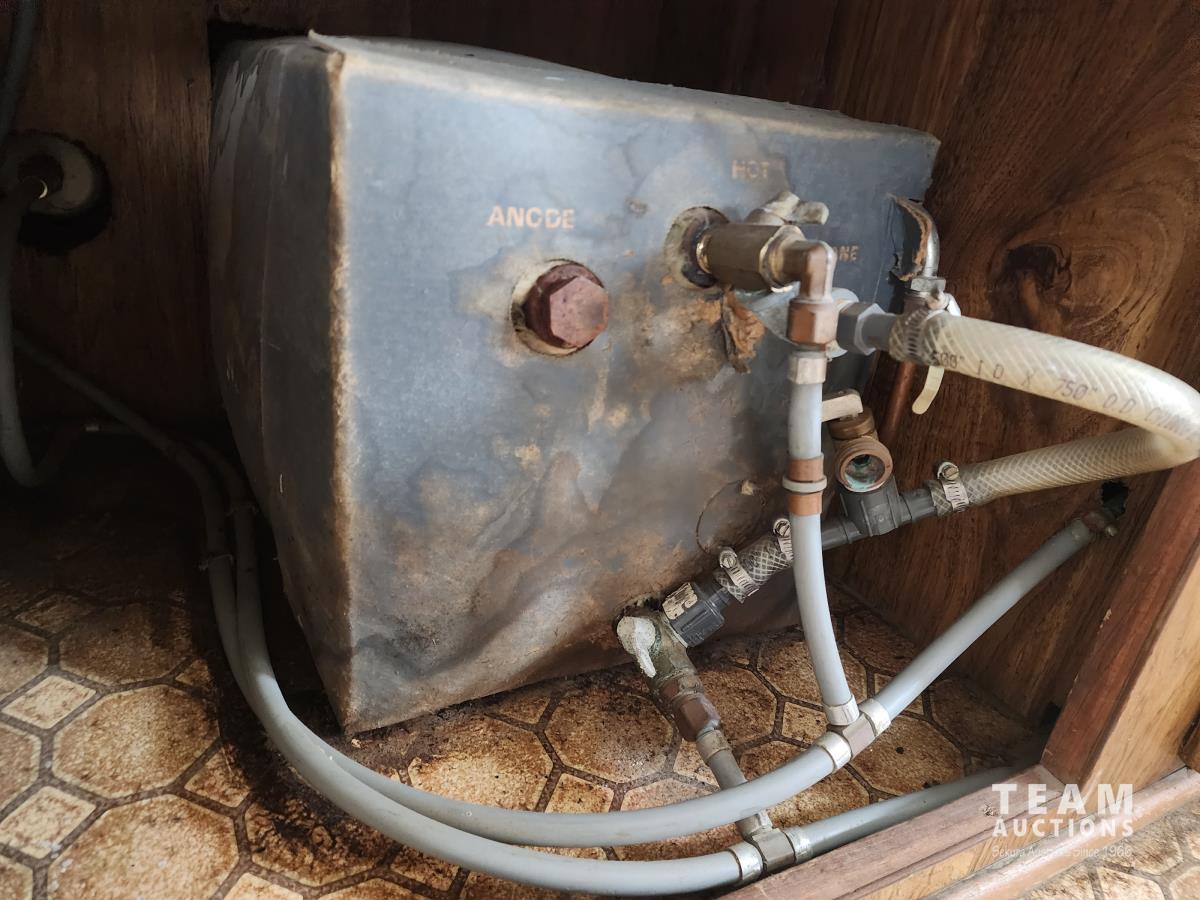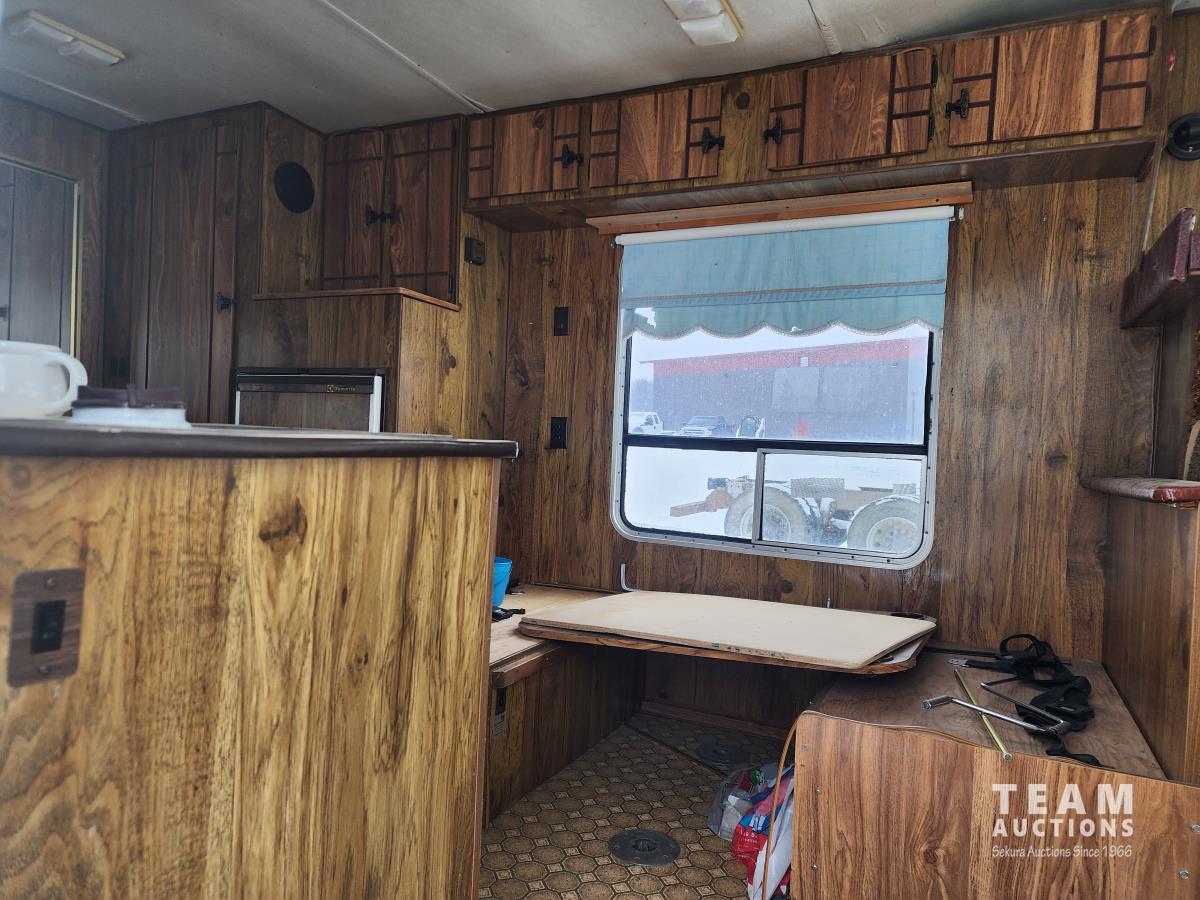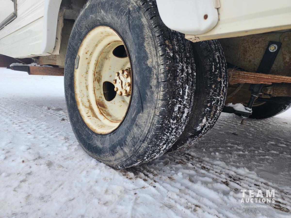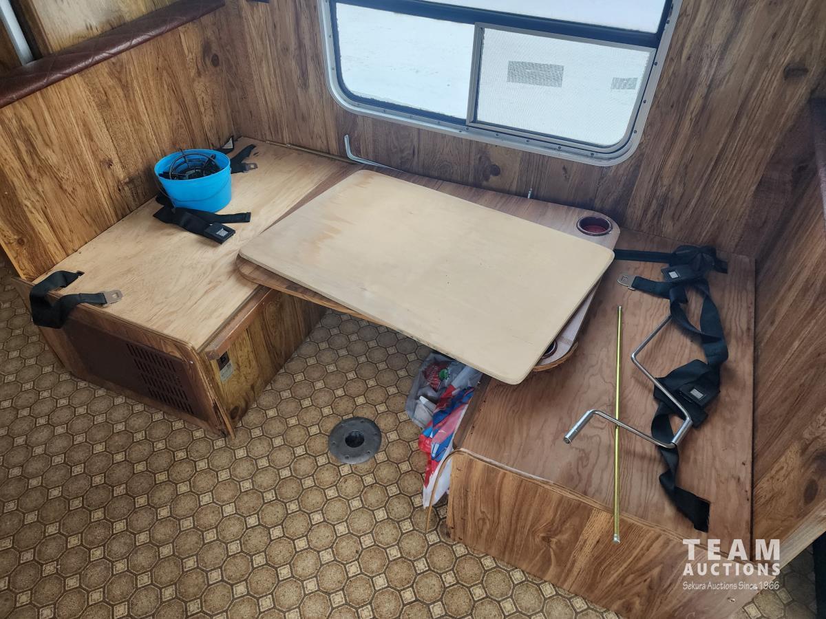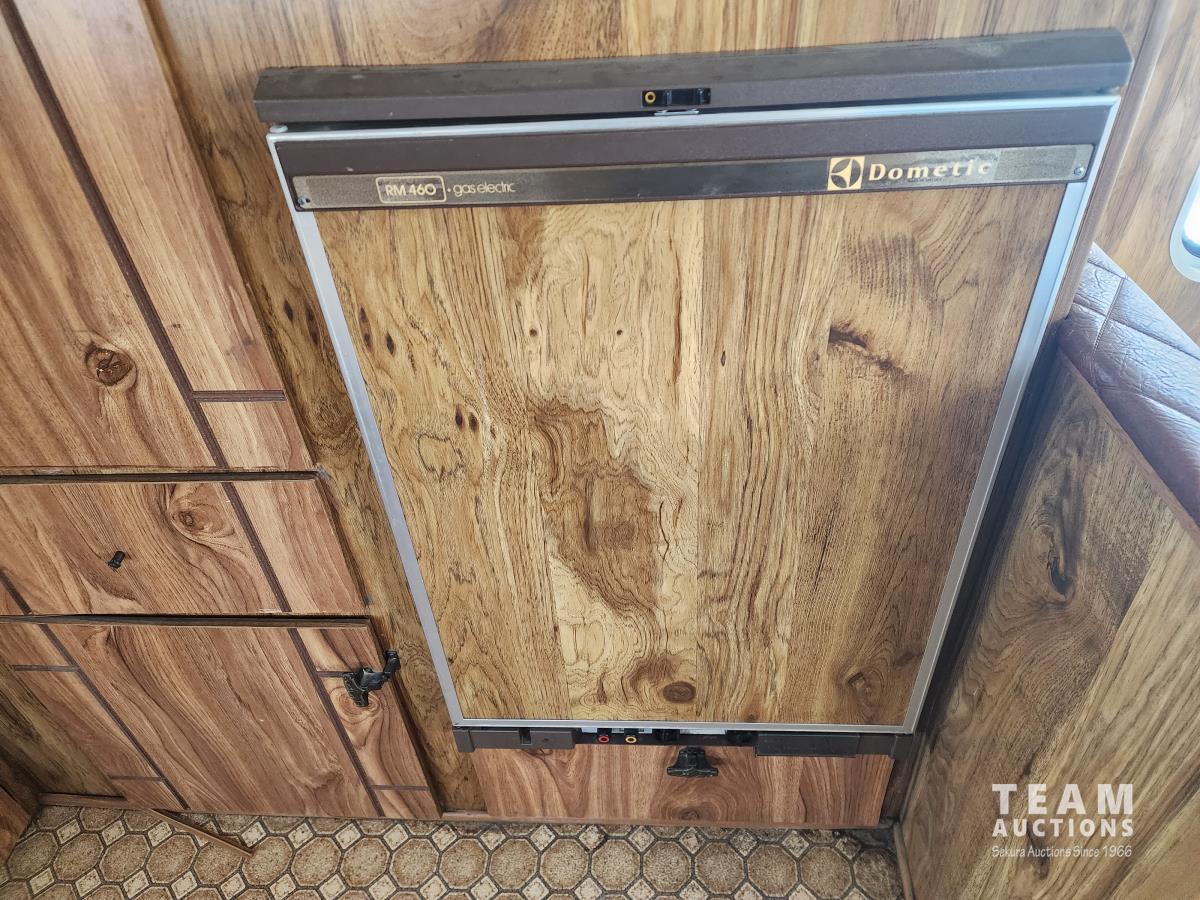 Gas engine, automatic transmission, radio, heater, stove, fridge, dining table, full bath, 8.75R16.5 tires