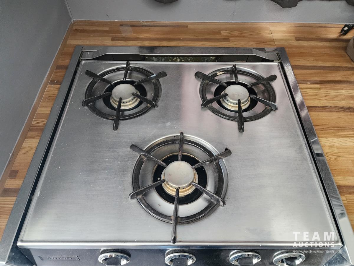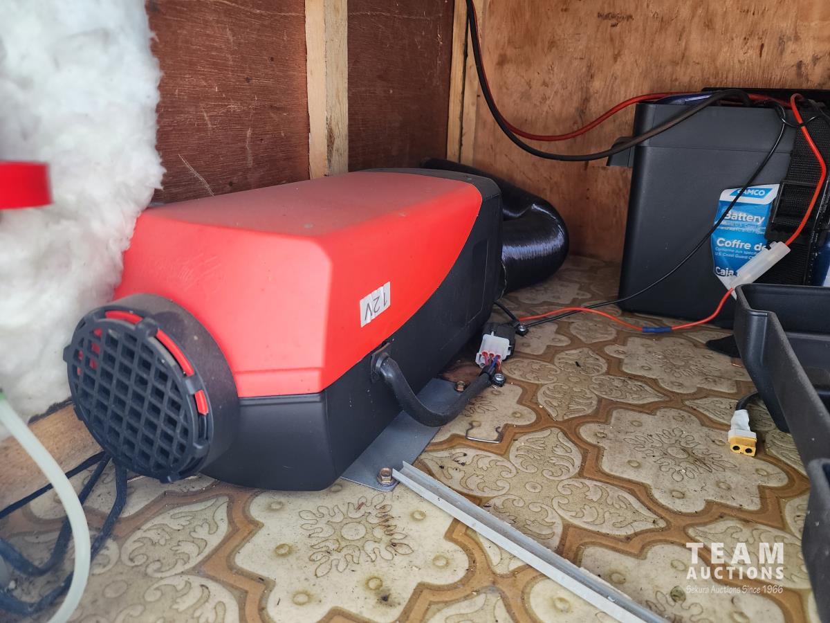 5L, V8 gas engine, auto transmission, A/C, 8 ft box, upgraded stereo, 245/75R16 tires, 11 ft camper, stove, fridge, sink, bed, dining table, toilet, diesel heater