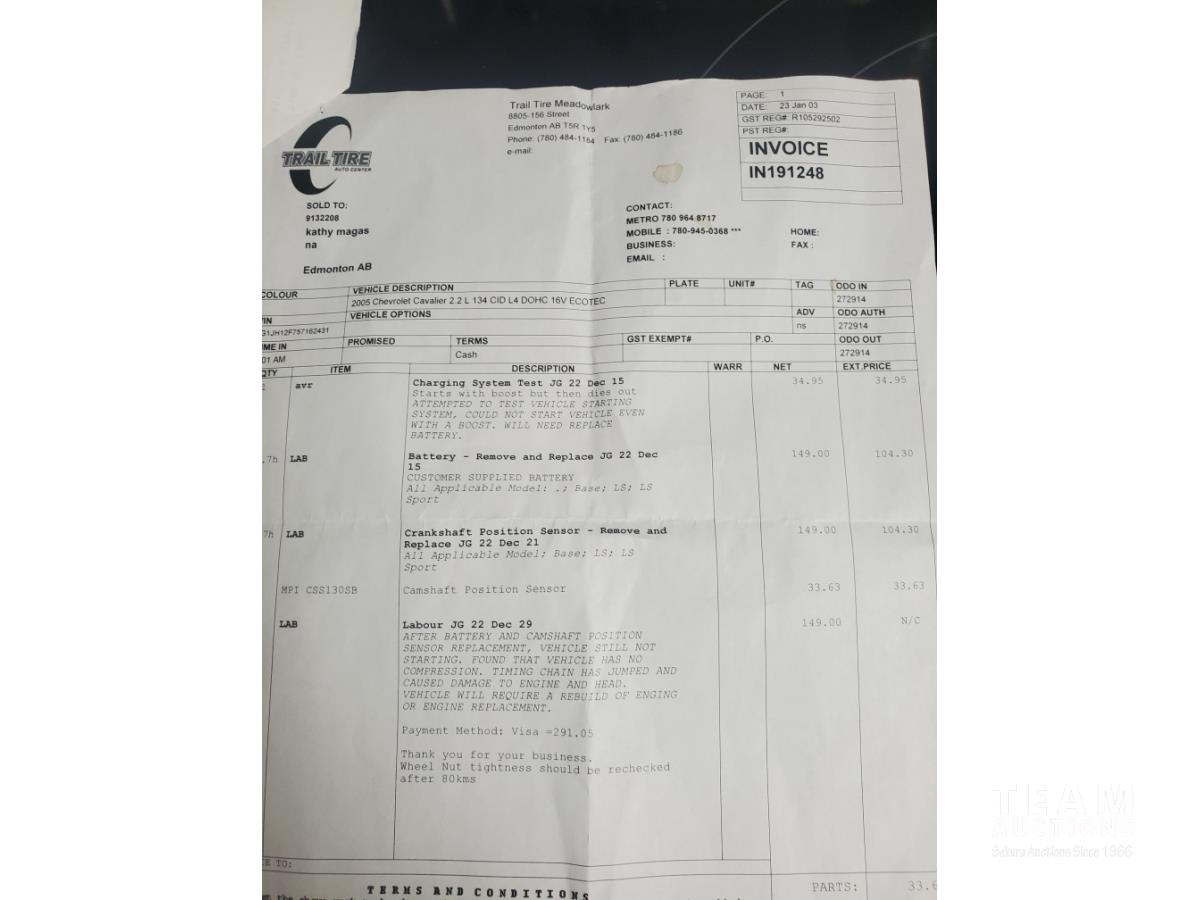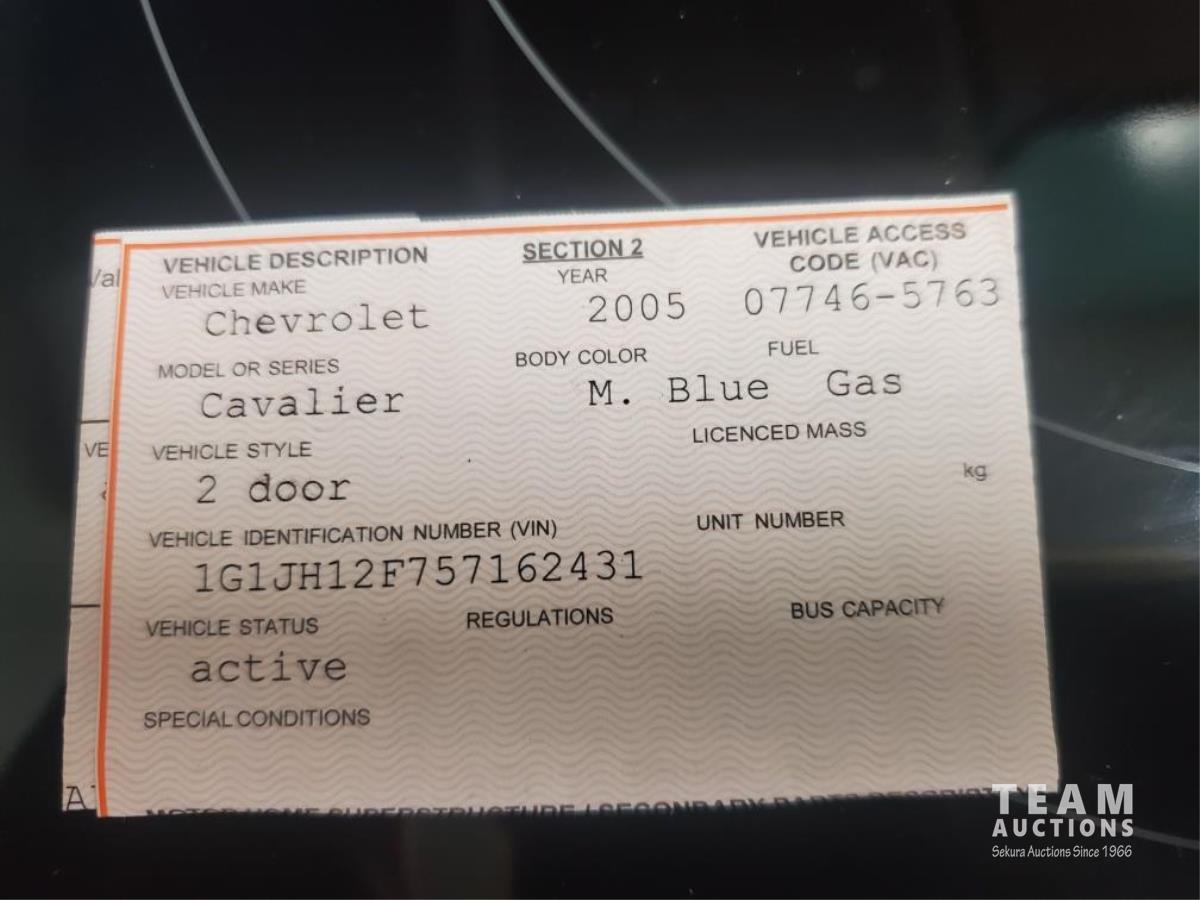 225 2005 Chevrolet Cavalier Z24 2WD Coupe Car (Inoperable)