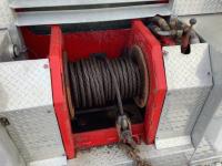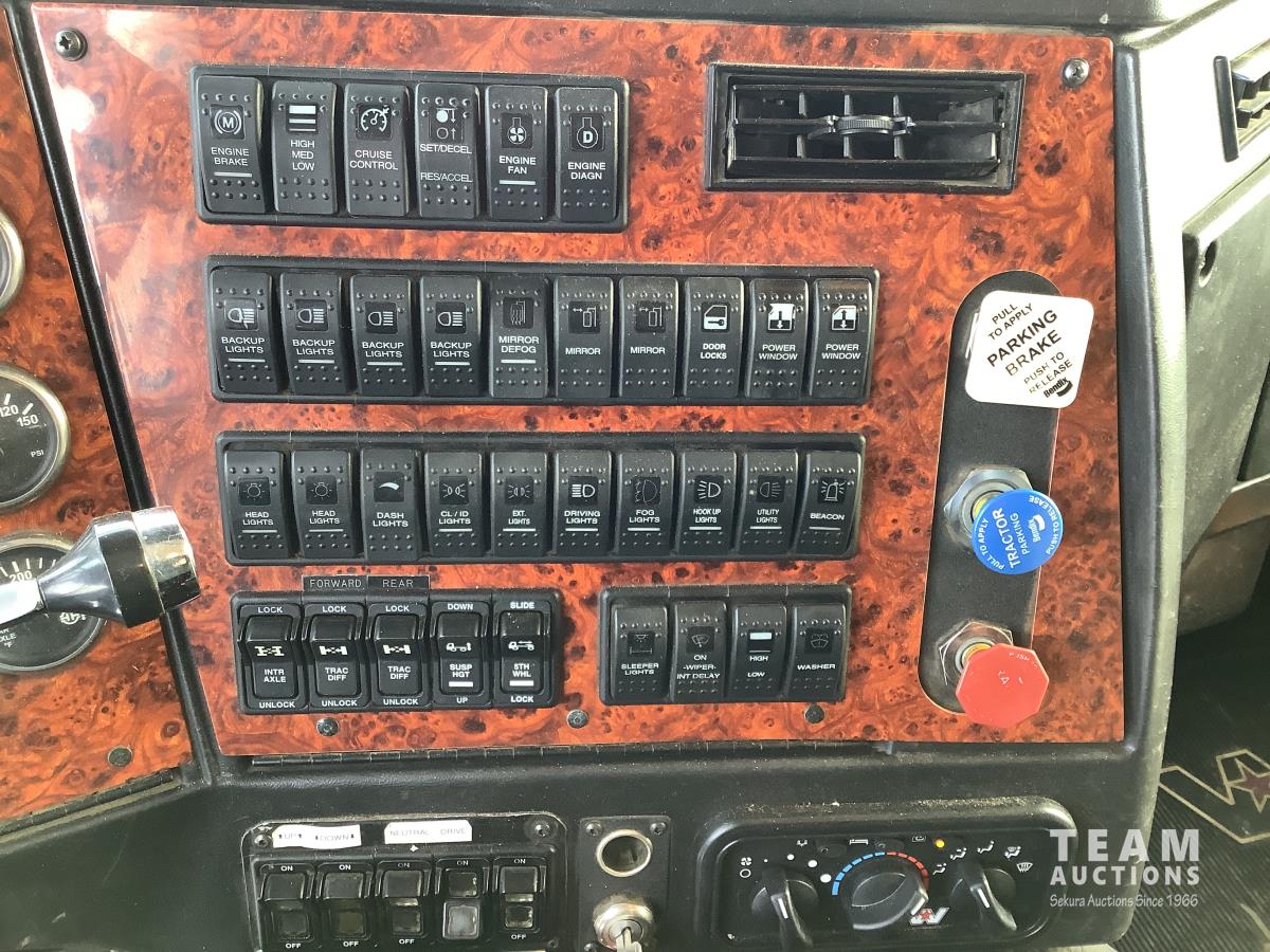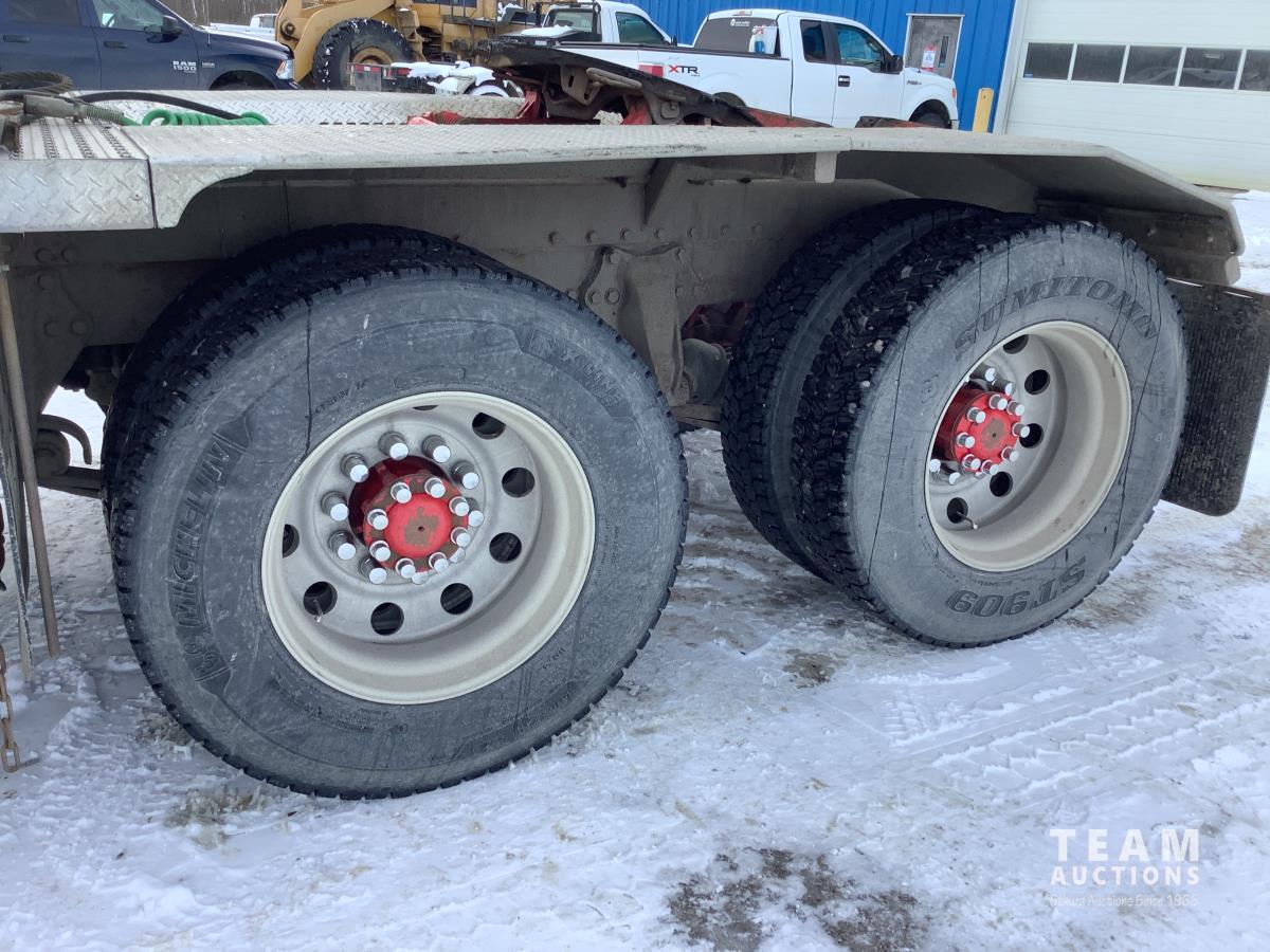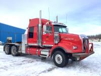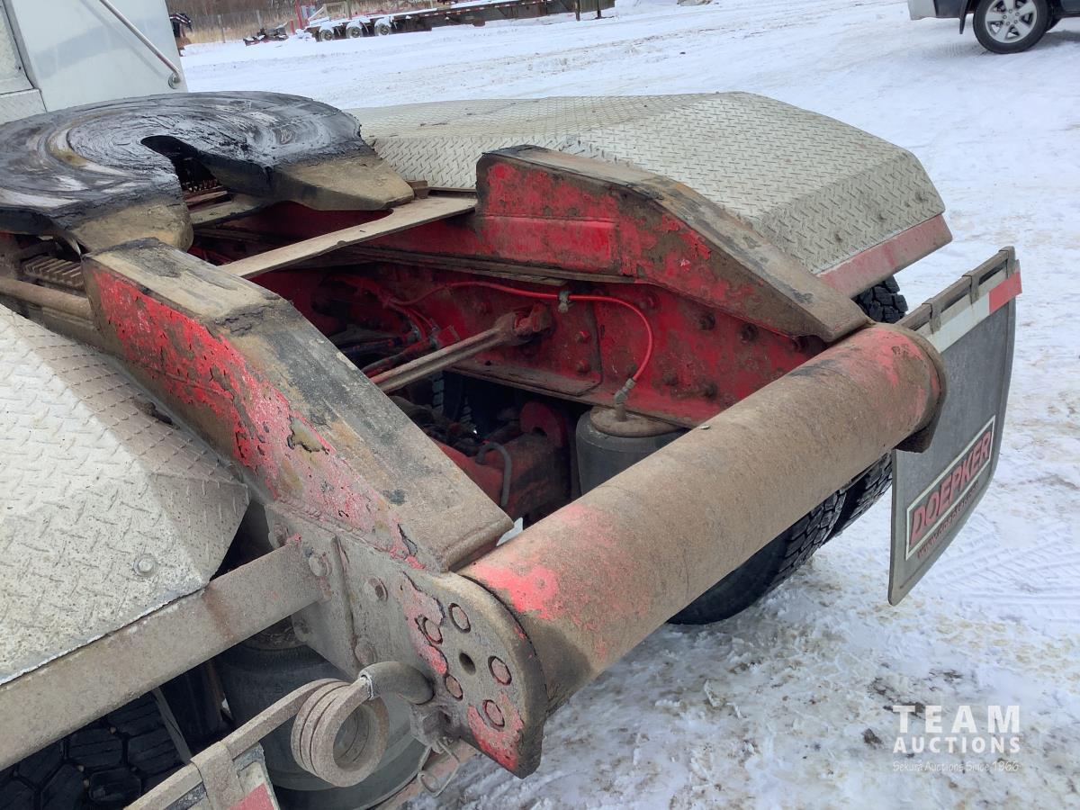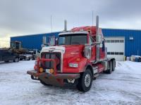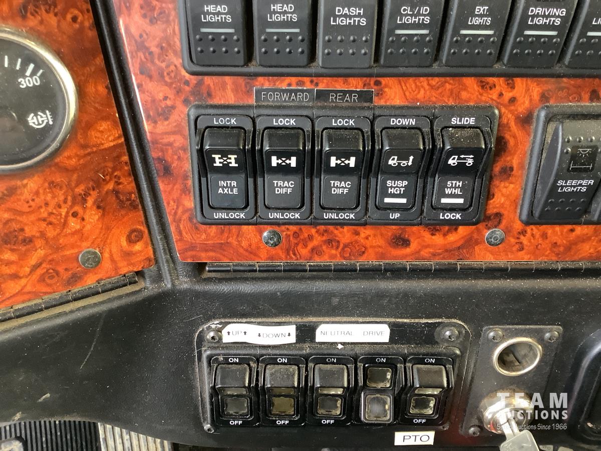 Detroit SERIES 60 515 HP Webasto diesel engine heater, engine brake, air suspension, 16,000 lb front axle, 46,000 lb rear axles, full lockers, 13 speed transmission with a Spicer 4 speed air shift auxiliary transmission, Brandon DP-50 hydraulic drive winch with the Alum Guy headache rack, air lift wide load sign, factory 10 wide cab mirrors, side cabinets, steps, decking, full rear fenders, rear live roll, all aluminum wheels, 385/65R22.5 front tires, 11R24.5 rear tires