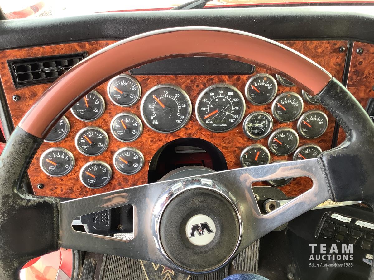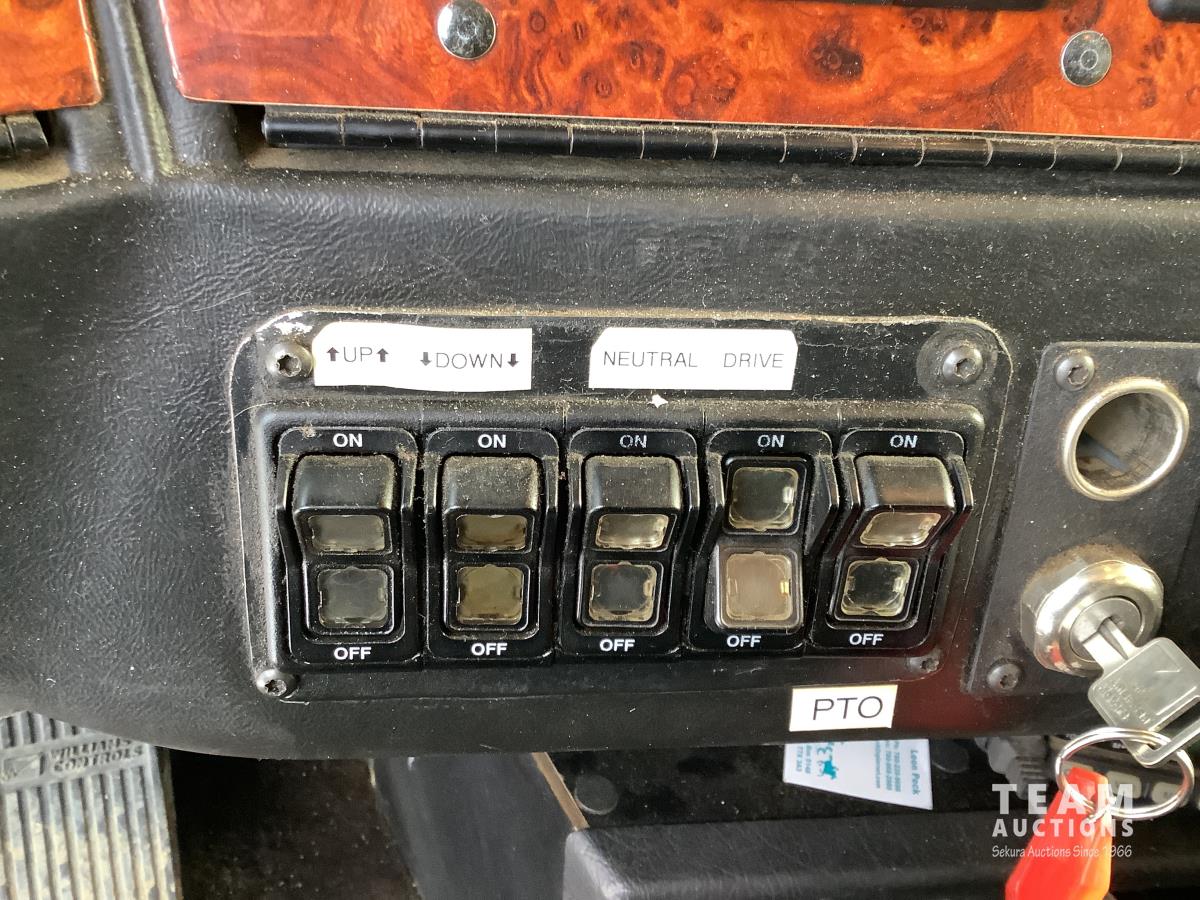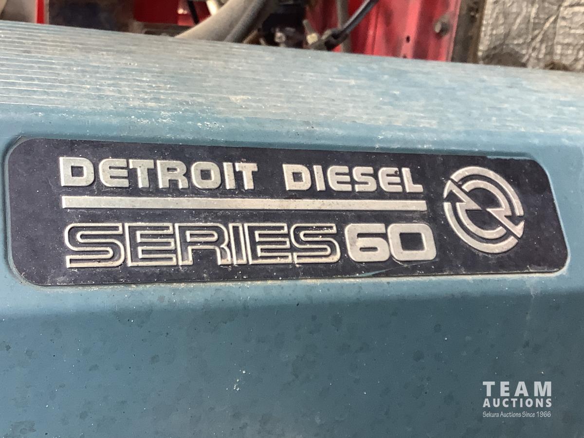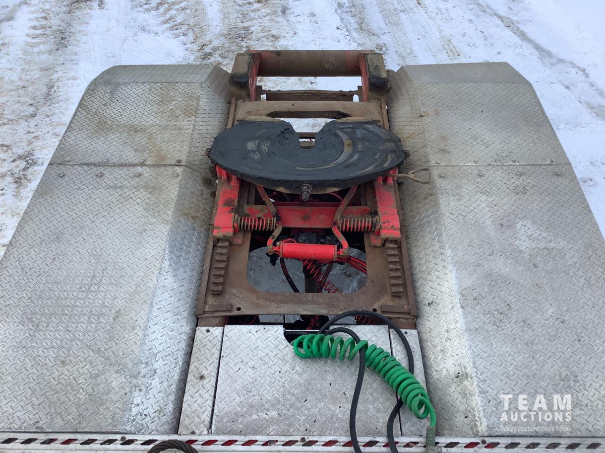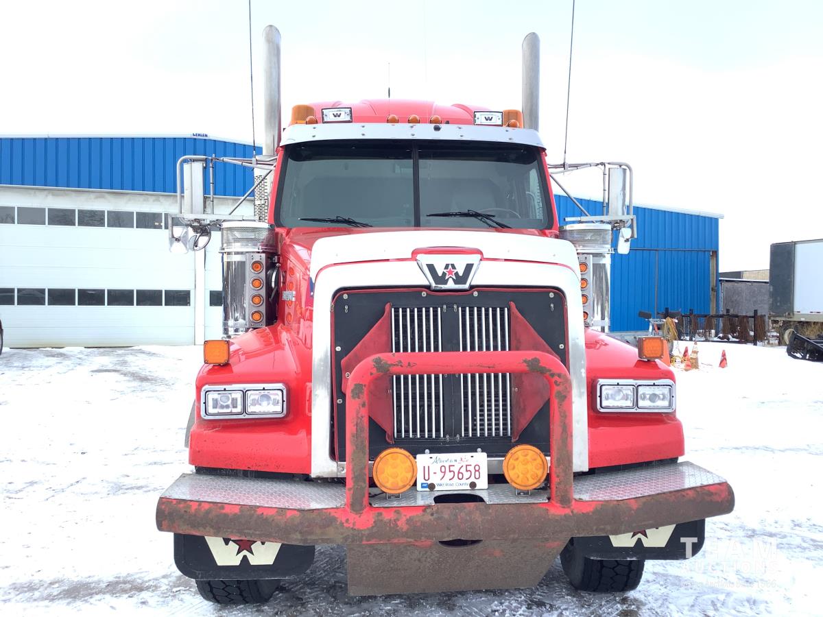 Detroit SERIES 60 515 HP Webasto diesel engine heater, engine brake, air suspension, 16,000 lb front axle, 46,000 lb rear axles, full lockers, 13 speed transmission with a Spicer 4 speed air shift auxiliary transmission, Brandon DP-50 hydraulic drive winch with the Alum Guy headache rack, air lift wide load sign, factory 10 wide cab mirrors, side cabinets, steps, decking, full rear fenders, rear live roll, all aluminum wheels, 385/65R22.5 front tires, 11R24.5 rear tires