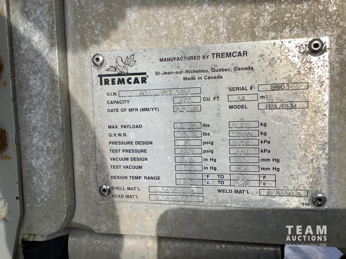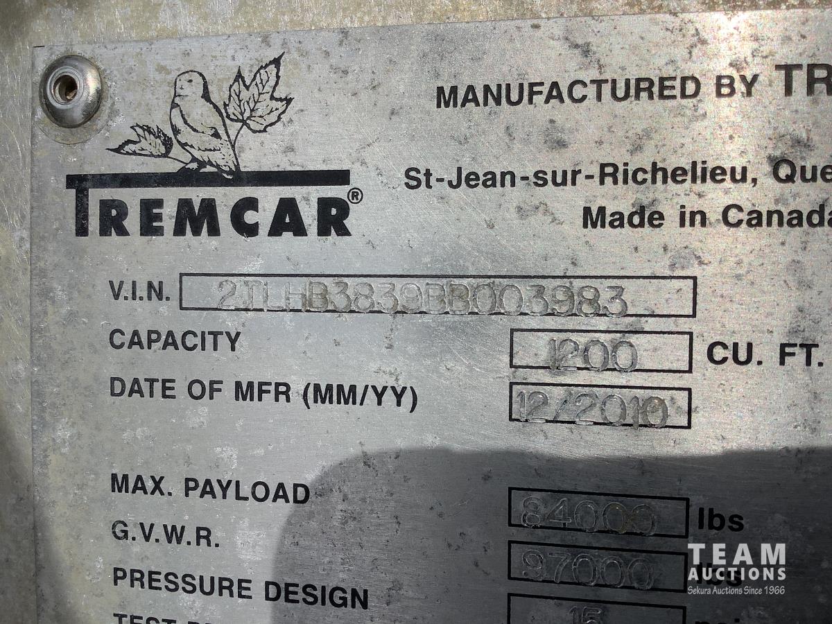 205 2011 Tremcar 1200 Cft TRI/A Aluminum Pneumatic Tank Trailer