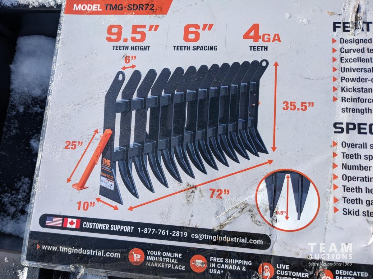134 TMG Industrial 72 Inch Root Debris Rake - Skid Steer Attachment (Unused)