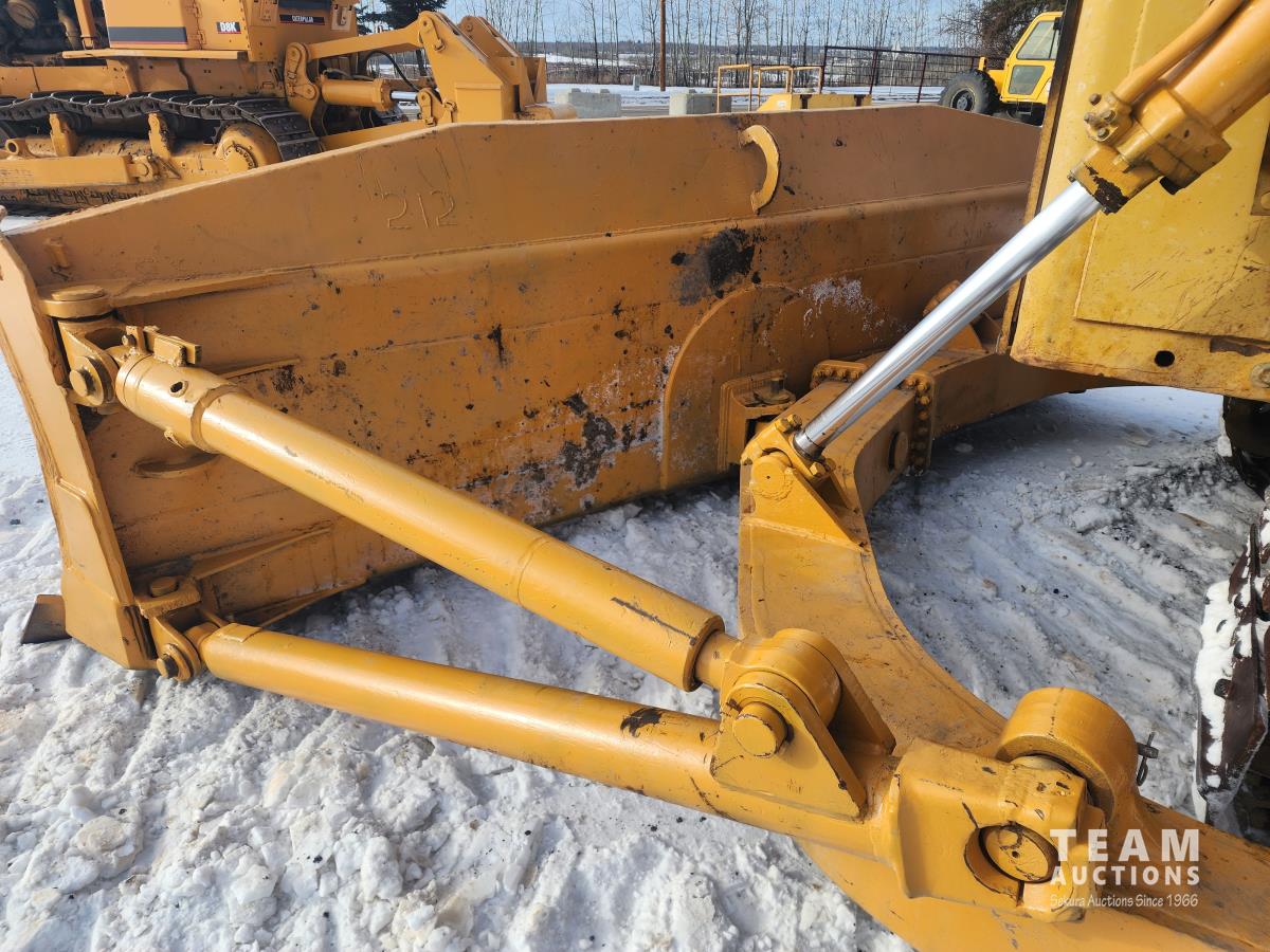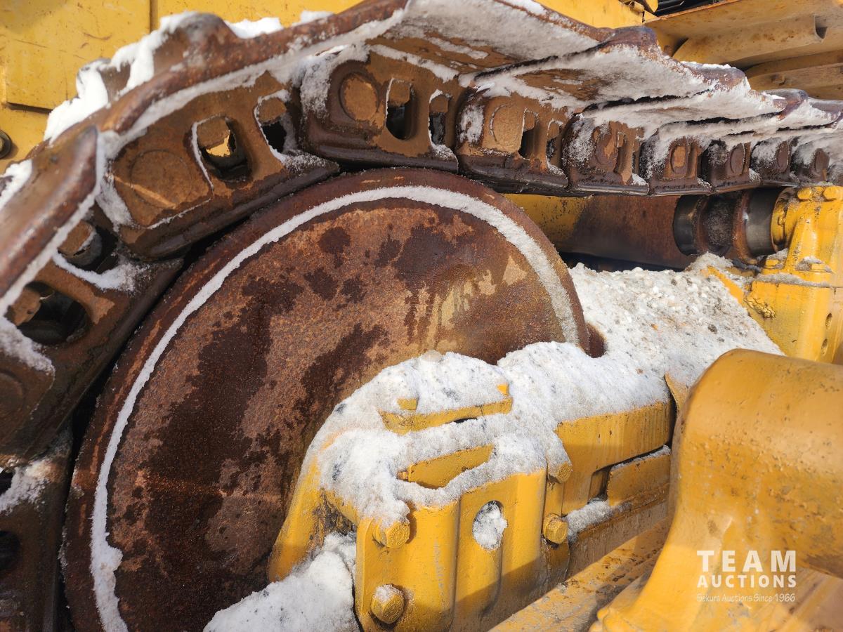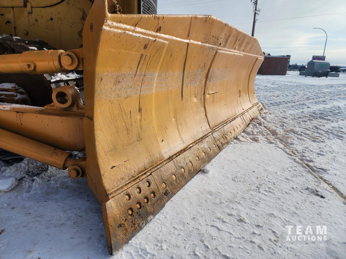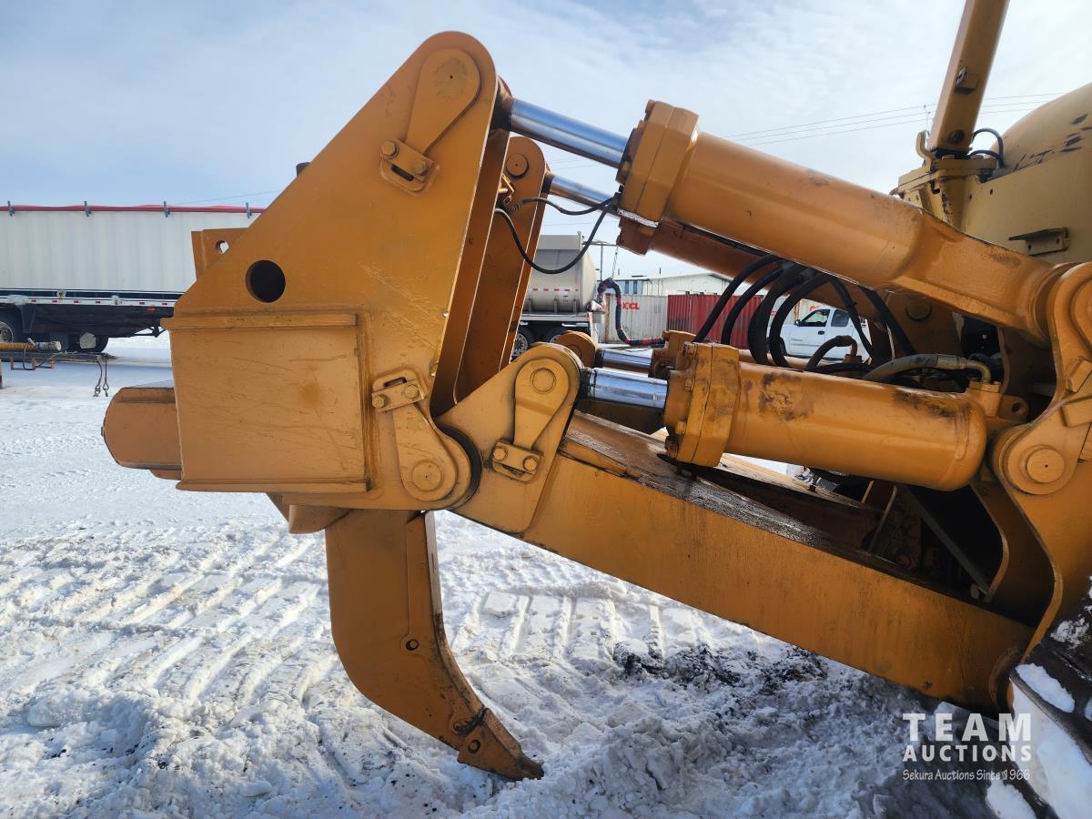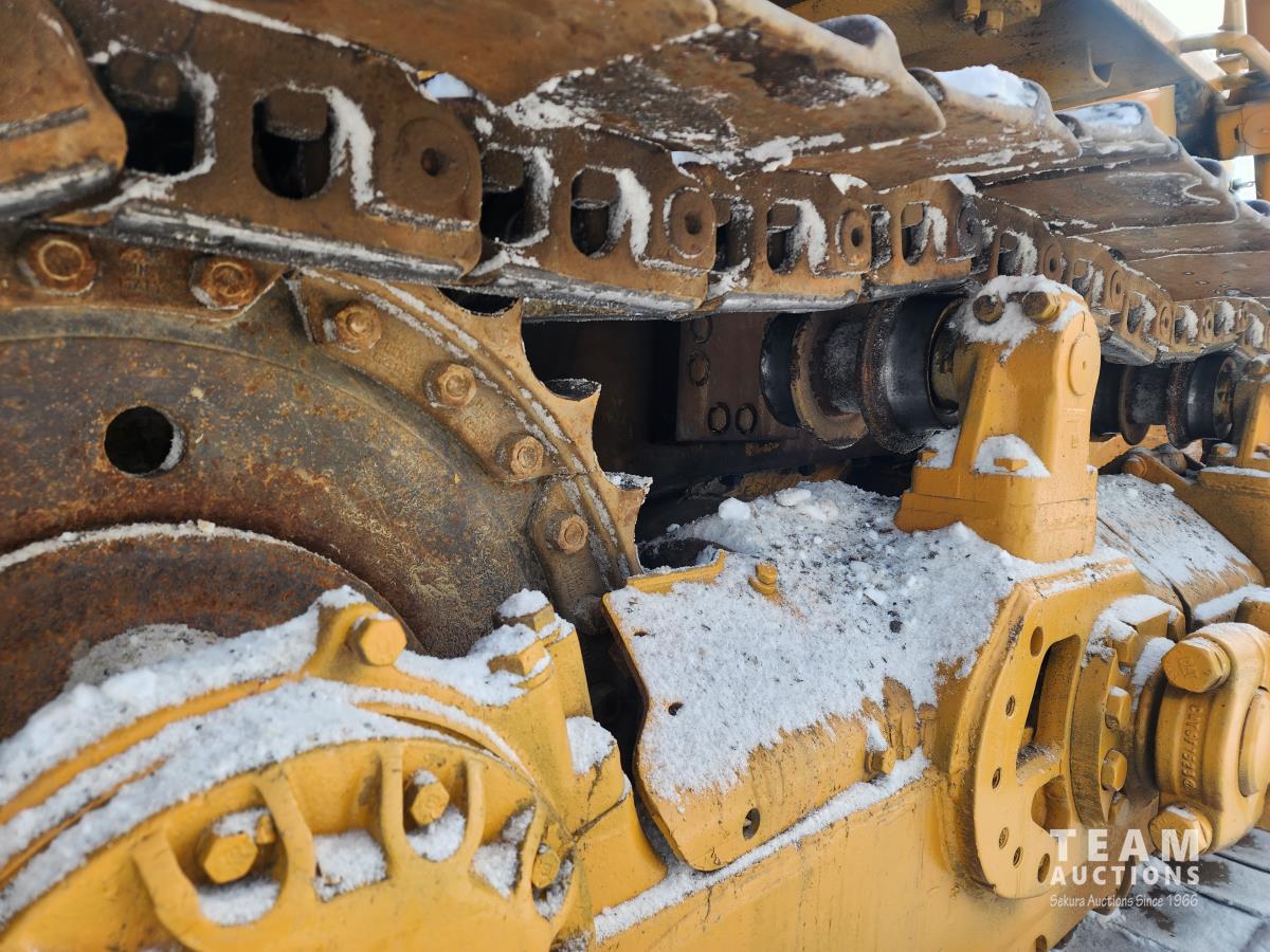 175 inch manual angle blade, open operator station, canopy and sweeps, 3 speed powershift transmission, lever steering, 26 inch pads, single shank ripper