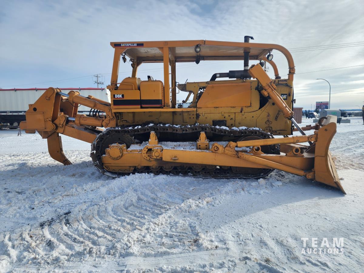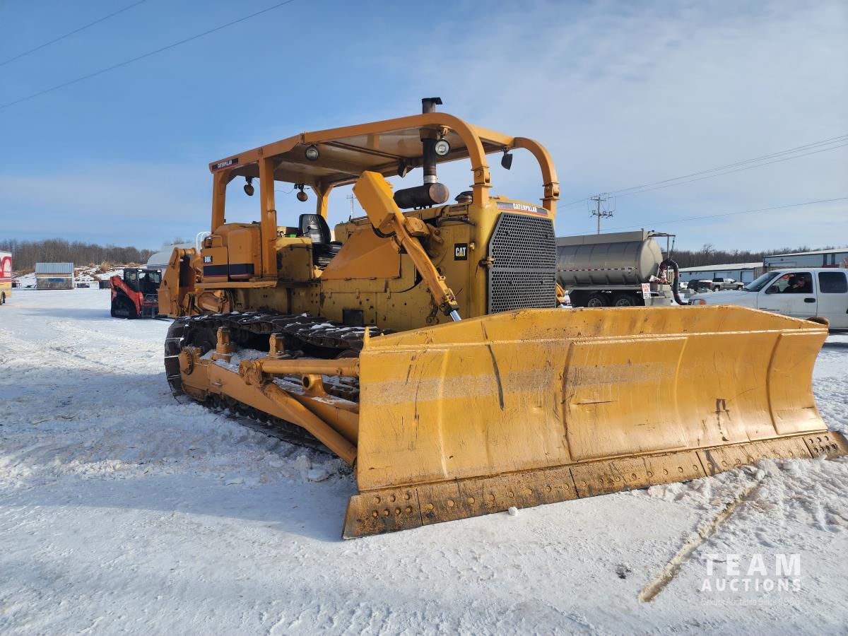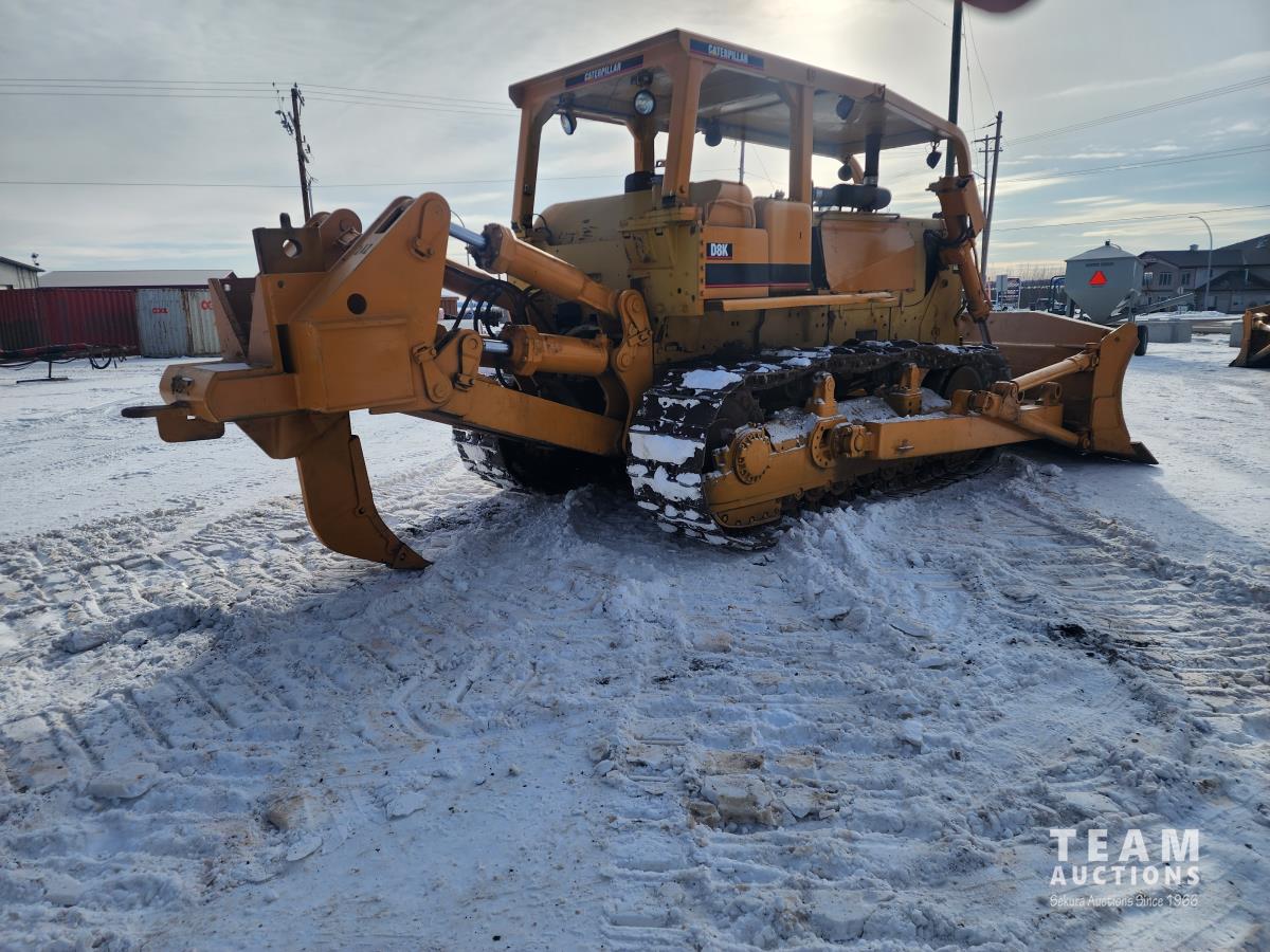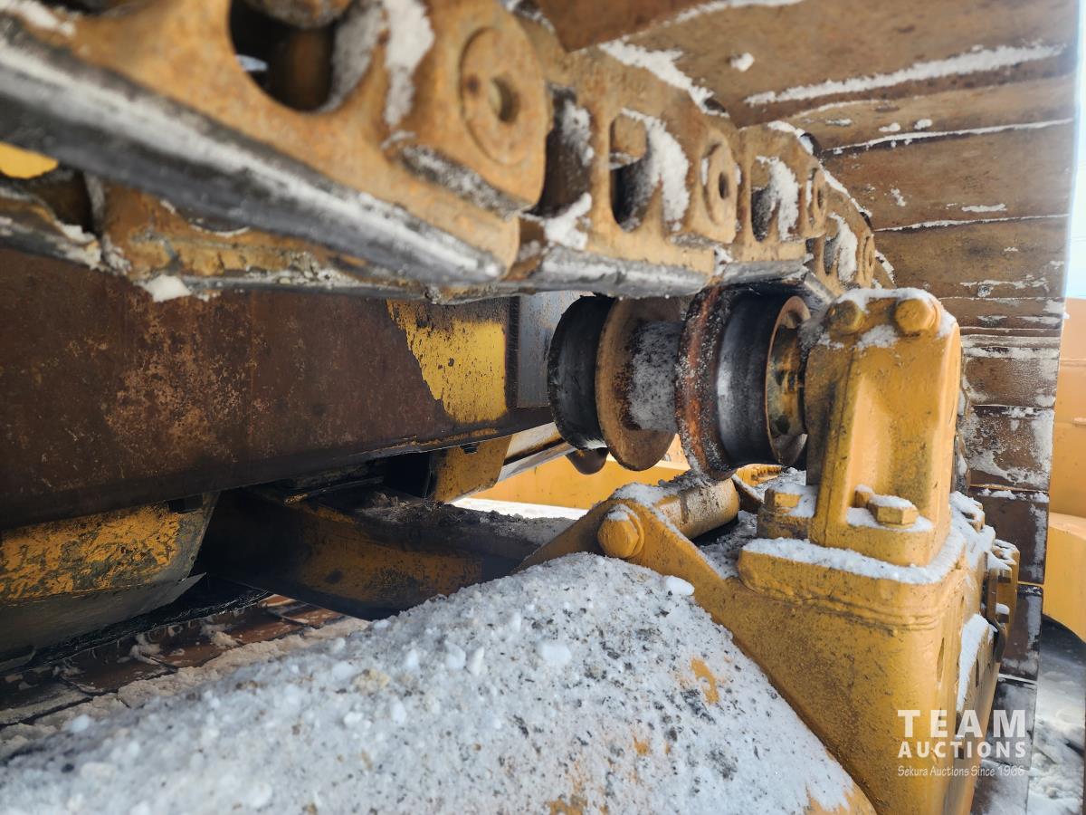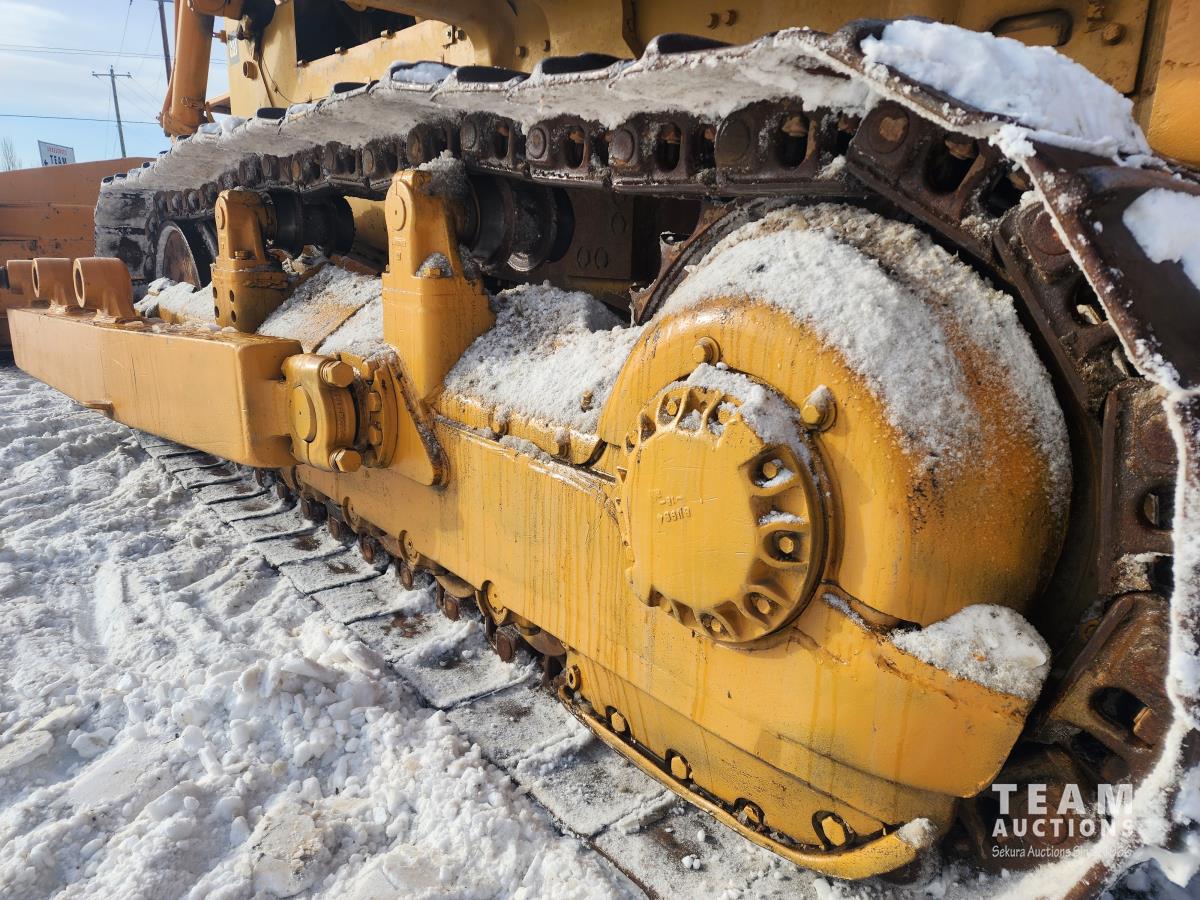 175 inch manual angle blade, open operator station, canopy and sweeps, 3 speed powershift transmission, lever steering, 26 inch pads, single shank ripper