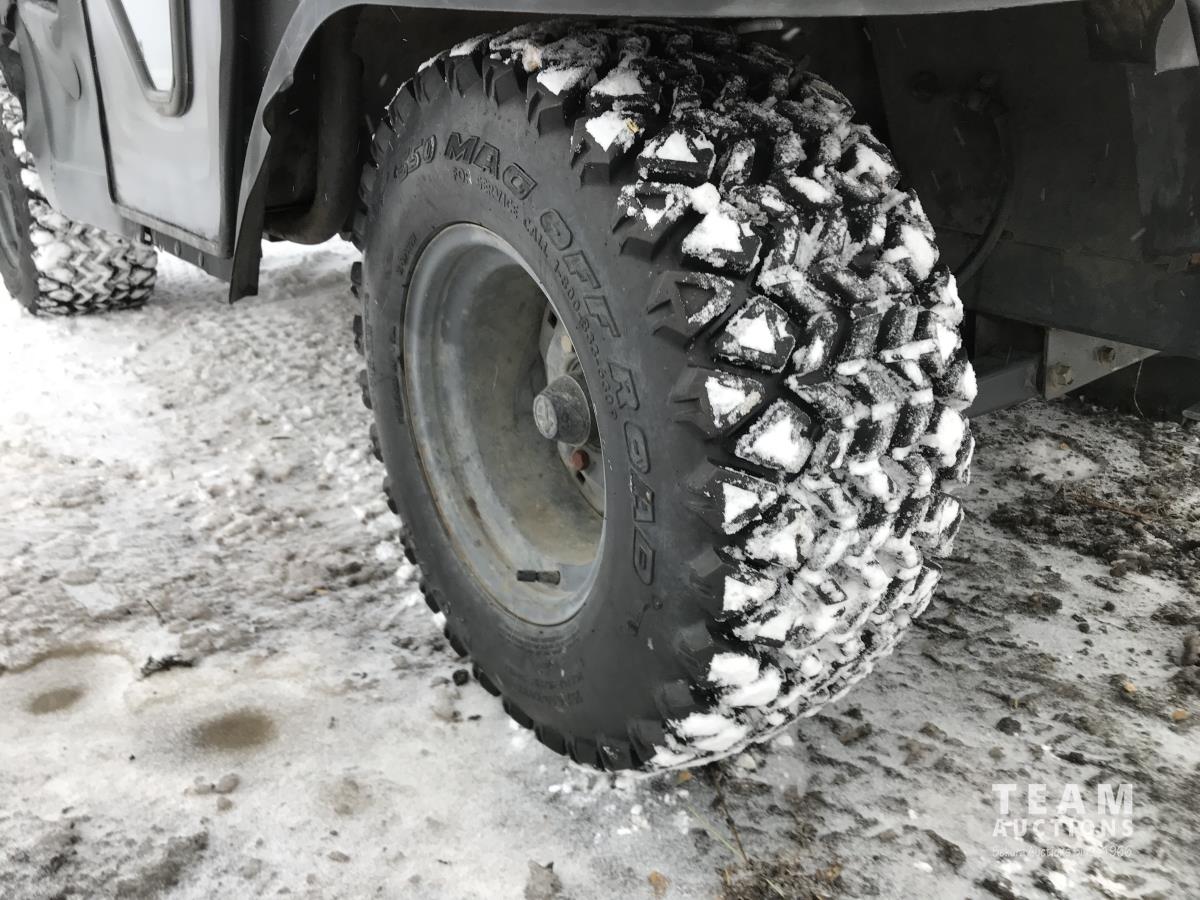 Hydro transmission, differential lock, 2WD and 4WD with LMH ranges, cab, power steering, windshield wipers, hydraulic box hoist