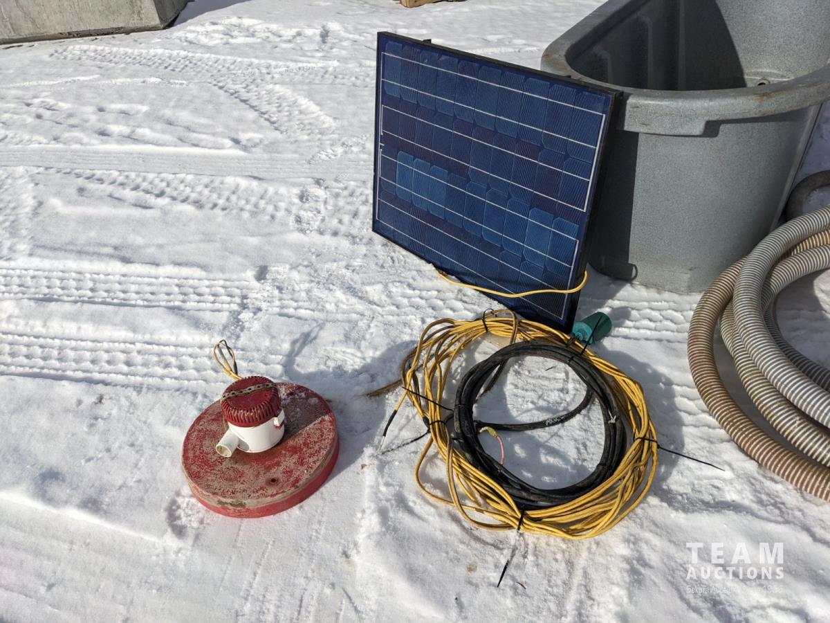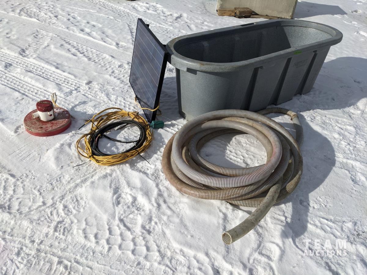 200gal tub, floating pump, 50w solar panel and wiring, 60 ft of 2 inch waterline