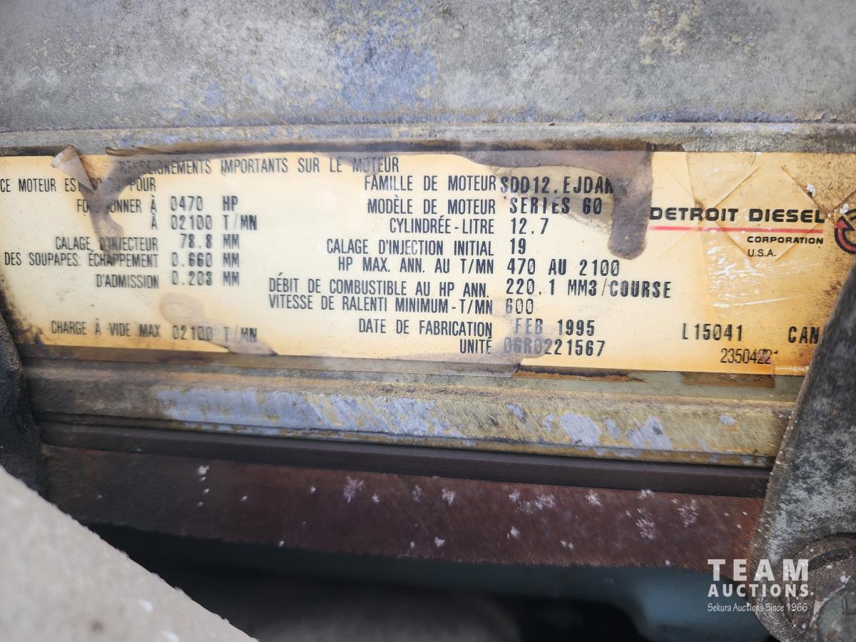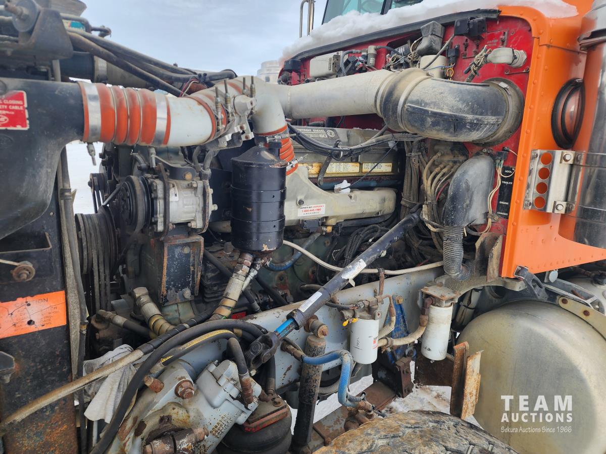 Detroit SERIES 60 6 cylinder 470 HP diesel engine, engine brake, Eaton Fuller transmission, air suspension, 18,000 lb front axle, 44,000 lb rear axles, full lockers, 252 inch WB, pintle hitch, all aluminum wheels, 11R24.5 tires