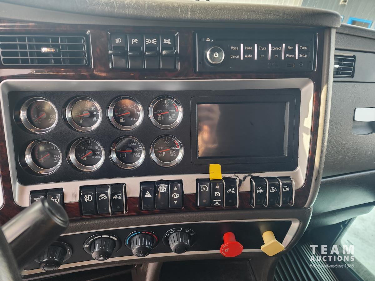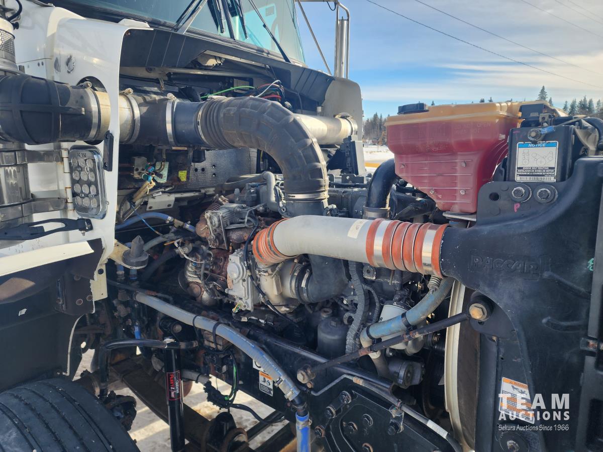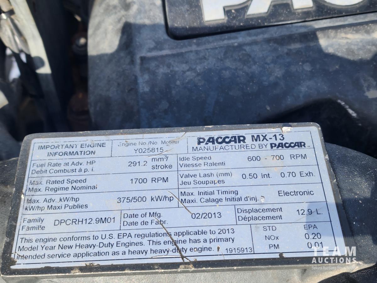 Paccar MX13 12.9 L 500 HP Webasto diesel engine heater, positive air shutoff, emissions deleted, Eaton Fuller 18 speed manual transmission, diesel cab heater, 62 inch sleeper, A/C, leather interior, air suspension, 13,200 lb front axle, 46,000 lb rear axles, full lockers, 4:10 ratio, 228 inch WB, 2 line wet kit (need to connect lines), ACE cabinet headache rack with lights, Step toolbox, chain hangers, Led headlights and work lights, Line-x Moose bumper and steps, heated/power moto mirrors, full gauges with navplus, 11R24.5 rear tires
