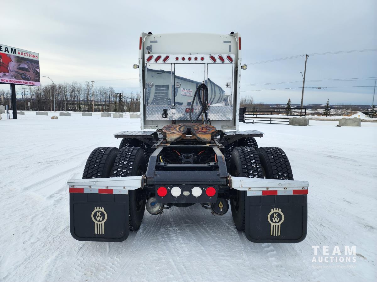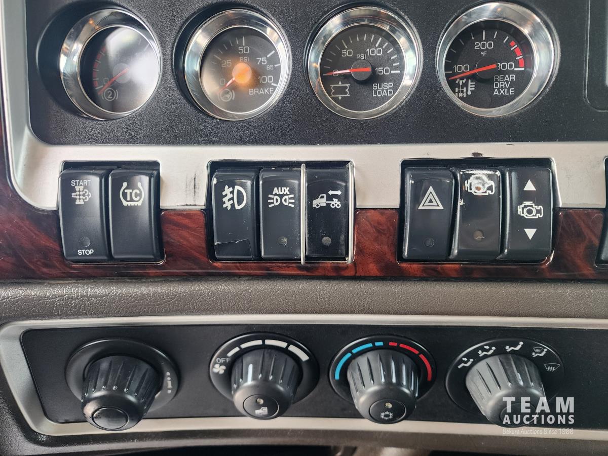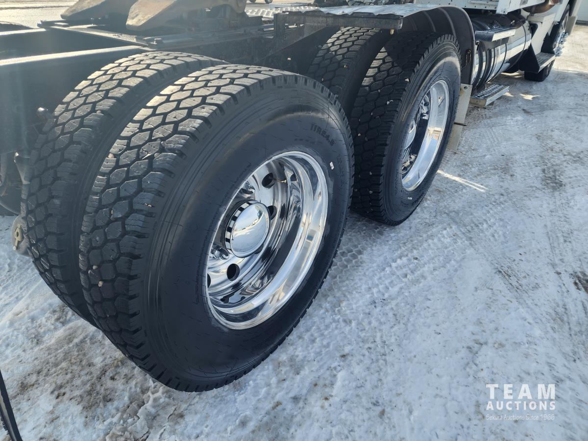 Paccar MX13 12.9 L 500 HP Webasto diesel engine heater, positive air shutoff, emissions deleted, Eaton Fuller 18 speed manual transmission, diesel cab heater, 62 inch sleeper, A/C, leather interior, air suspension, 13,200 lb front axle, 46,000 lb rear axles, full lockers, 4:10 ratio, 228 inch WB, 2 line wet kit (need to connect lines), ACE cabinet headache rack with lights, Step toolbox, chain hangers, Led headlights and work lights, Line-x Moose bumper and steps, heated/power moto mirrors, full gauges with navplus, 11R24.5 rear tires