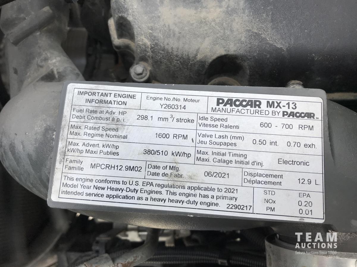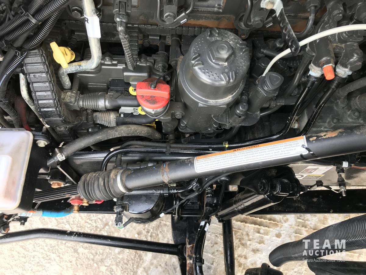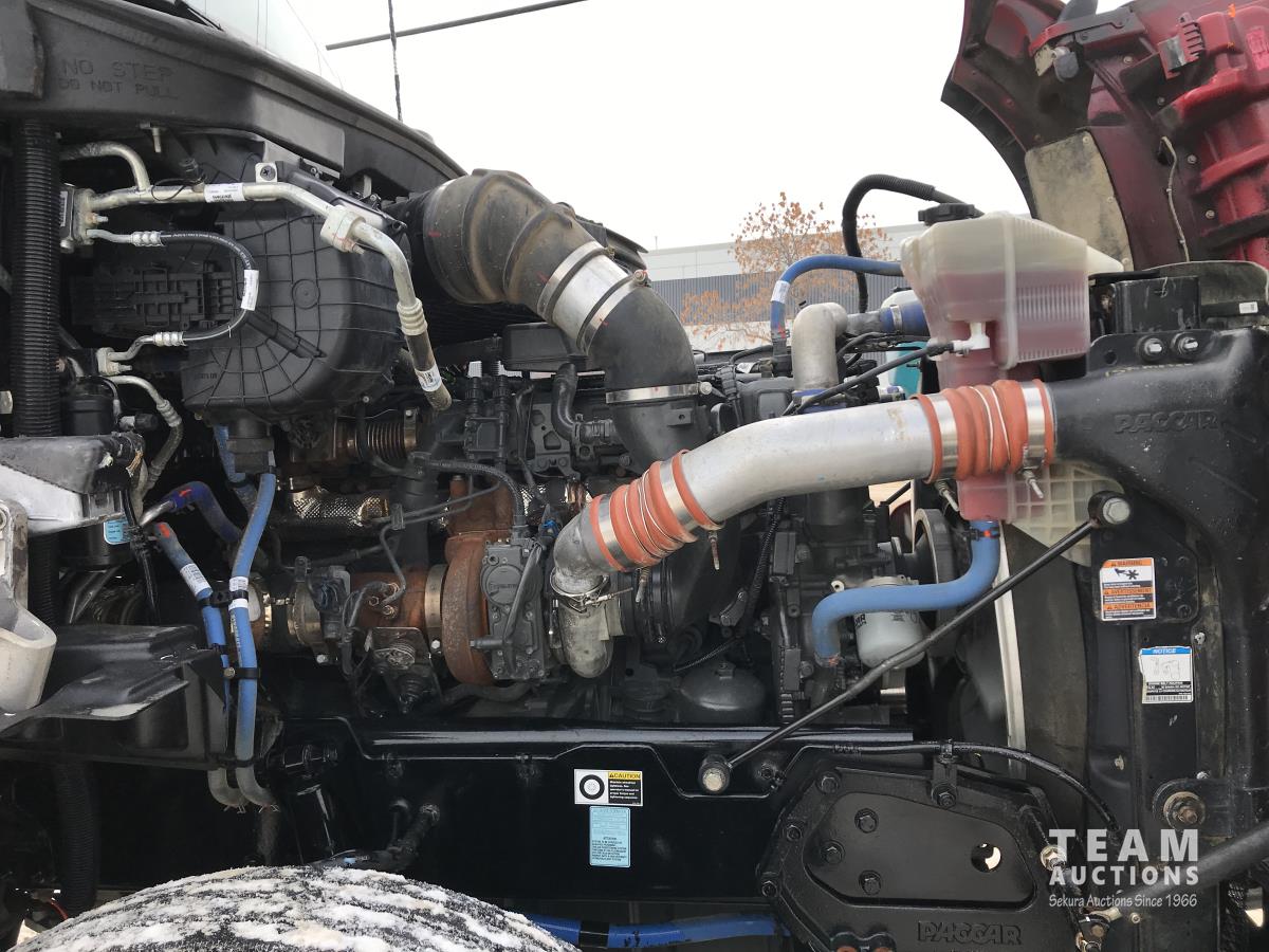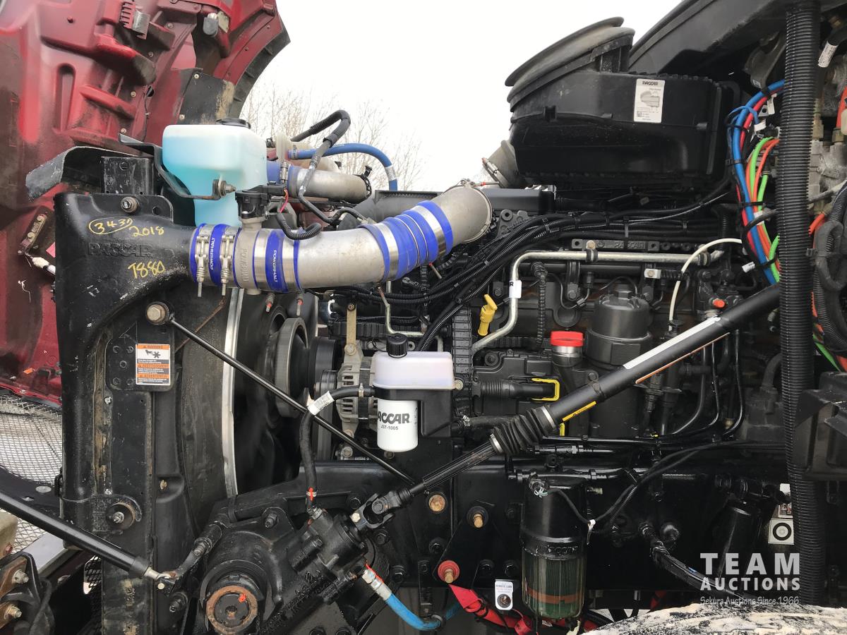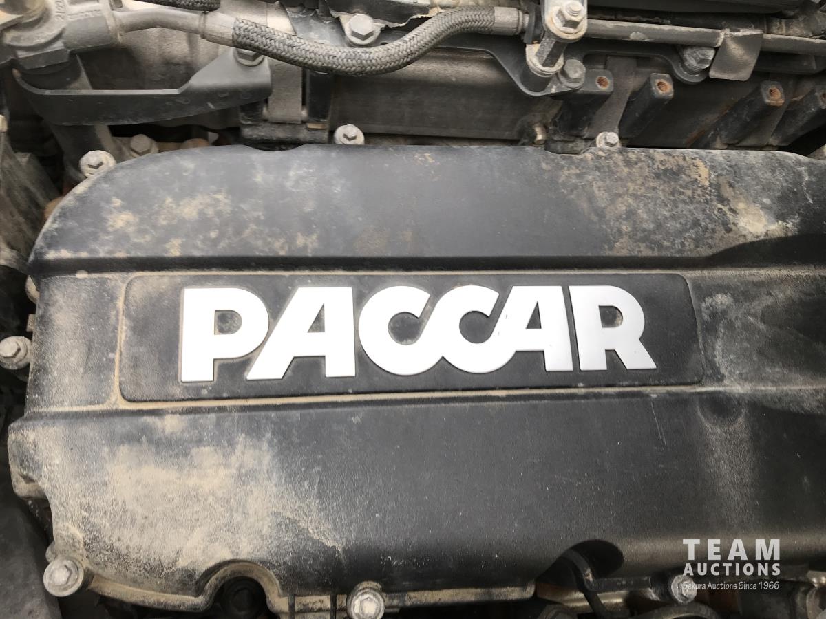 Paccar M-13 6 cylinder 510 HP Eaton Fuller 18 speed manual transmission, integral 72 inch Integral mid rise 76", sleeper, A/C, leather interior, air ride driver seat, 13,000 lb front axle, 46,000 lb rear axles, full lockers, 3.91 ratio, heavy duty driveline, engine and oil pan heater, key fob for door locks, cooler, Holland 5th wheel, PTO, fluid pump, remote greaser for front end, full front windshield privacy curtain, (2) battery shut off switches, on frame boosting terminal,, 11R24.5 tires