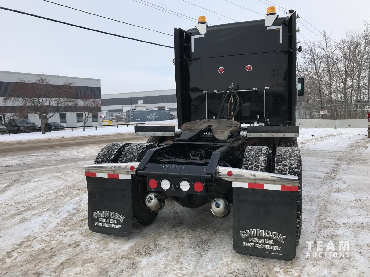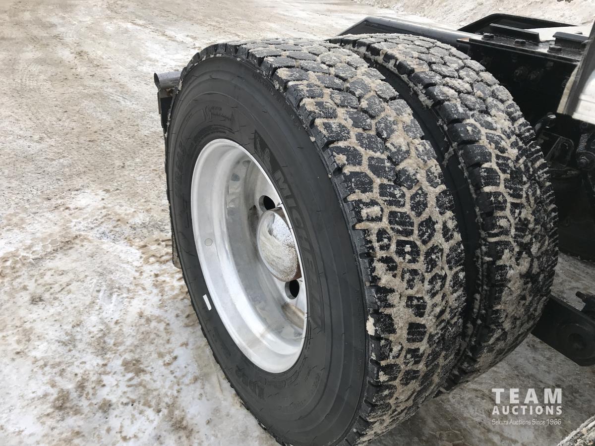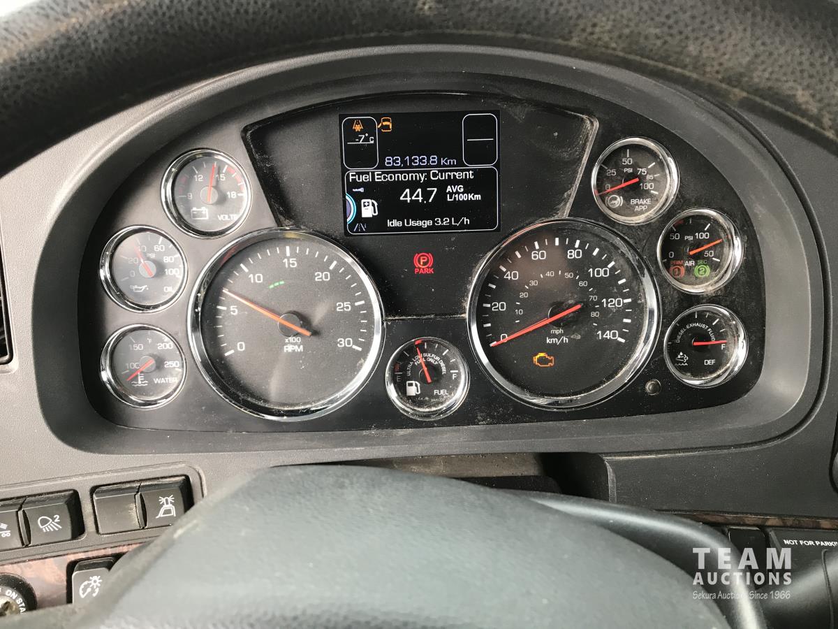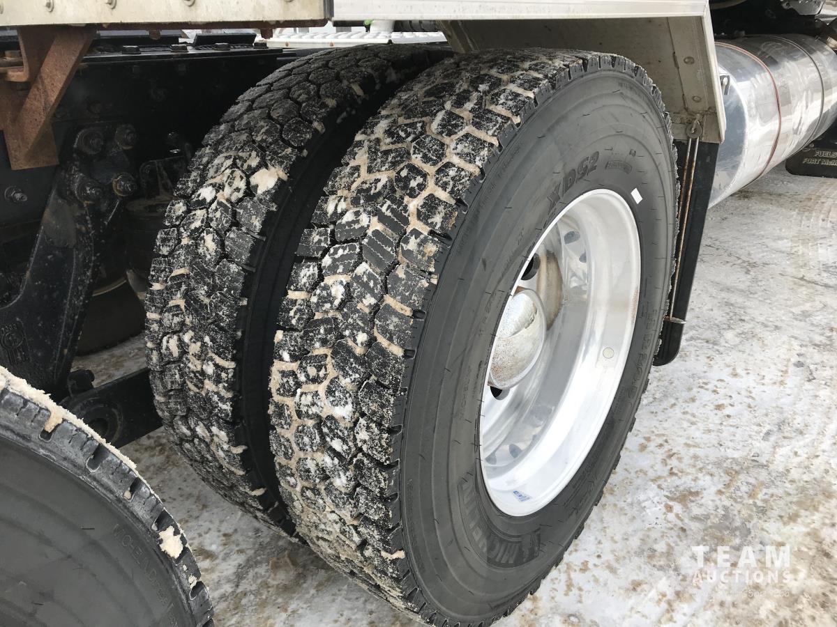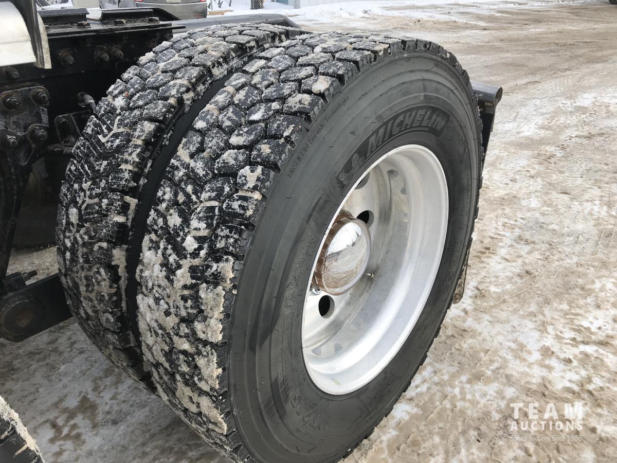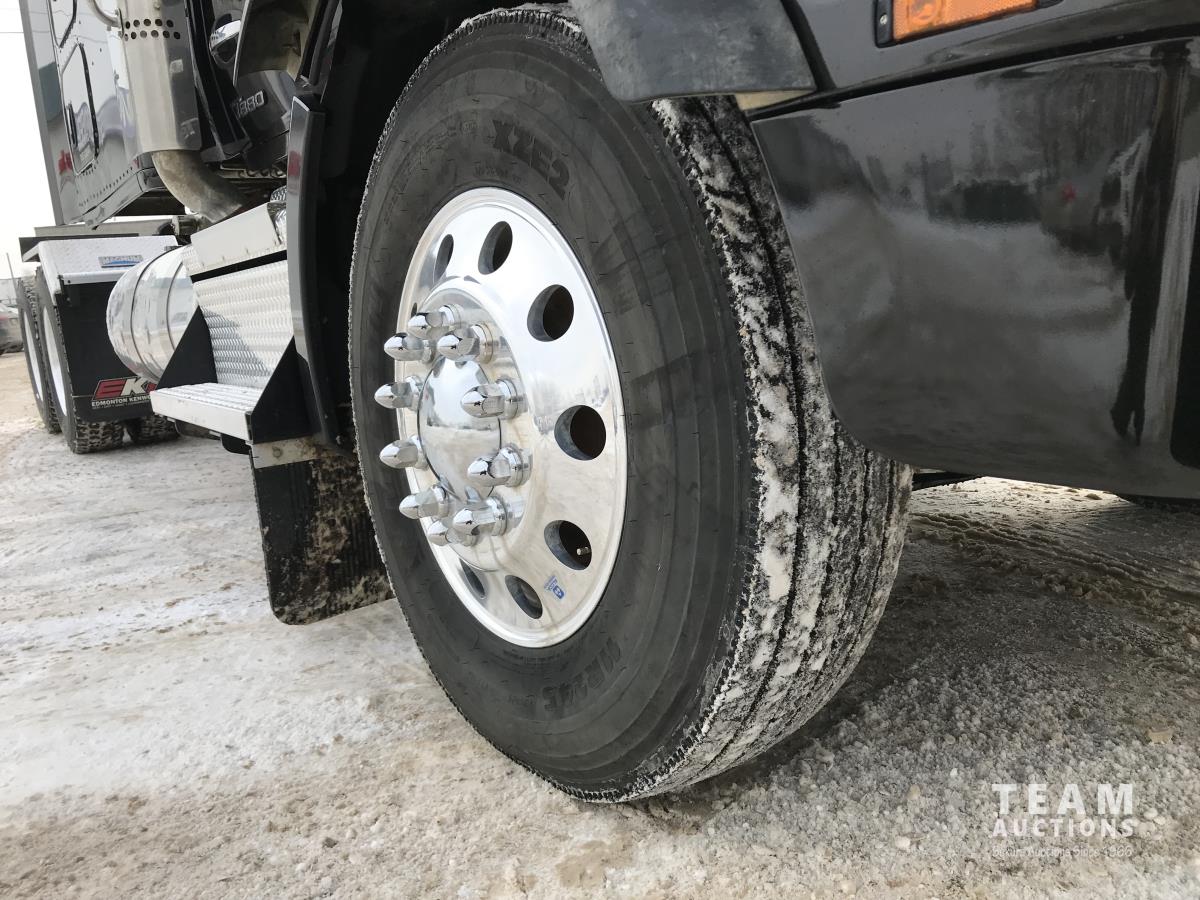 Paccar M-13 6 cylinder 510 HP Eaton Fuller 18 speed manual transmission, integral 72 inch Integral mid rise 76", sleeper, A/C, leather interior, air ride driver seat, 13,000 lb front axle, 46,000 lb rear axles, full lockers, 3.91 ratio, heavy duty driveline, engine and oil pan heater, key fob for door locks, cooler, Holland 5th wheel, PTO, fluid pump, remote greaser for front end, full front windshield privacy curtain, (2) battery shut off switches, on frame boosting terminal,, 11R24.5 tires