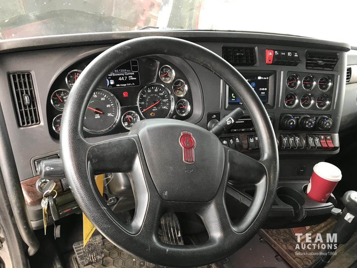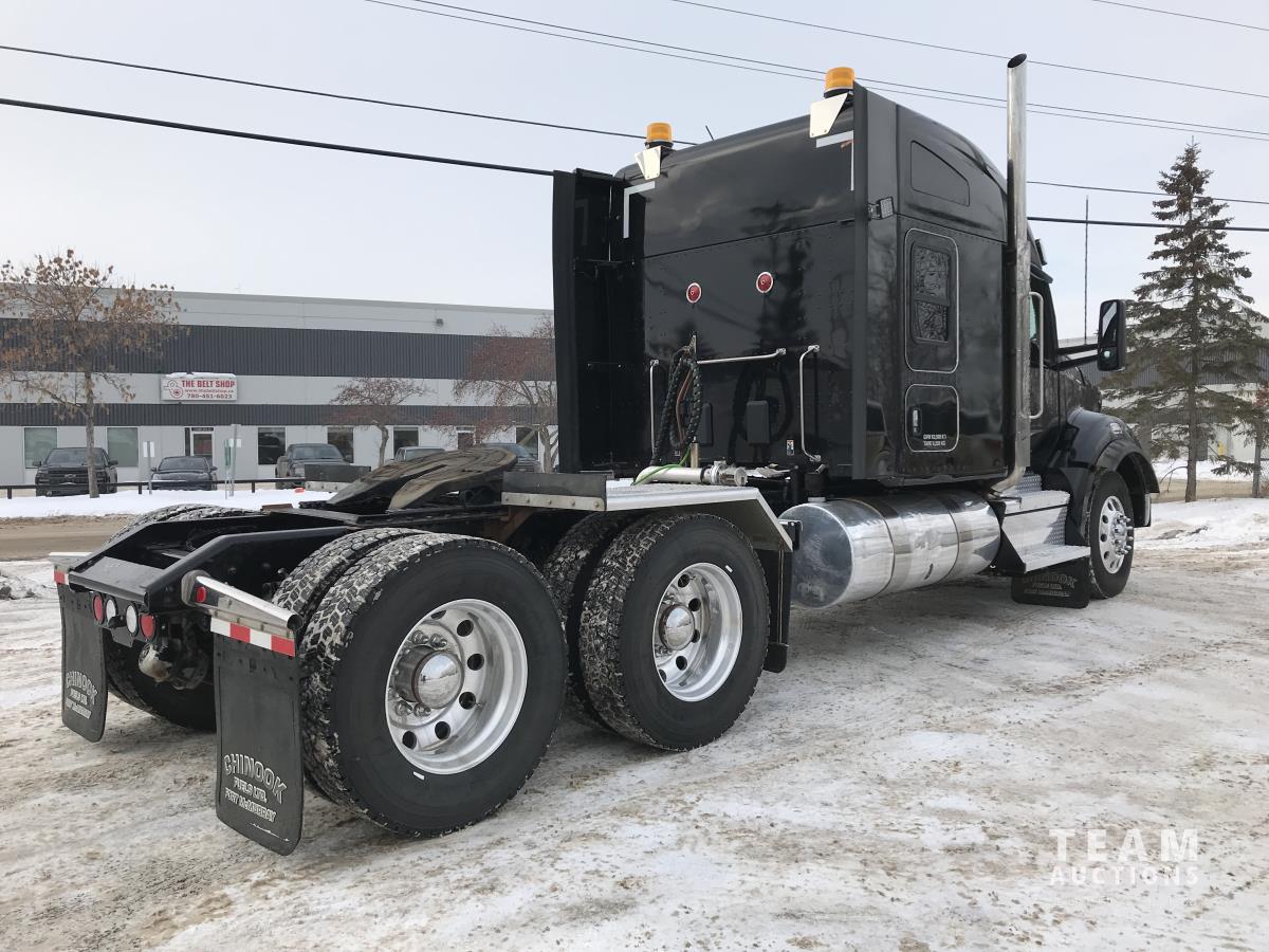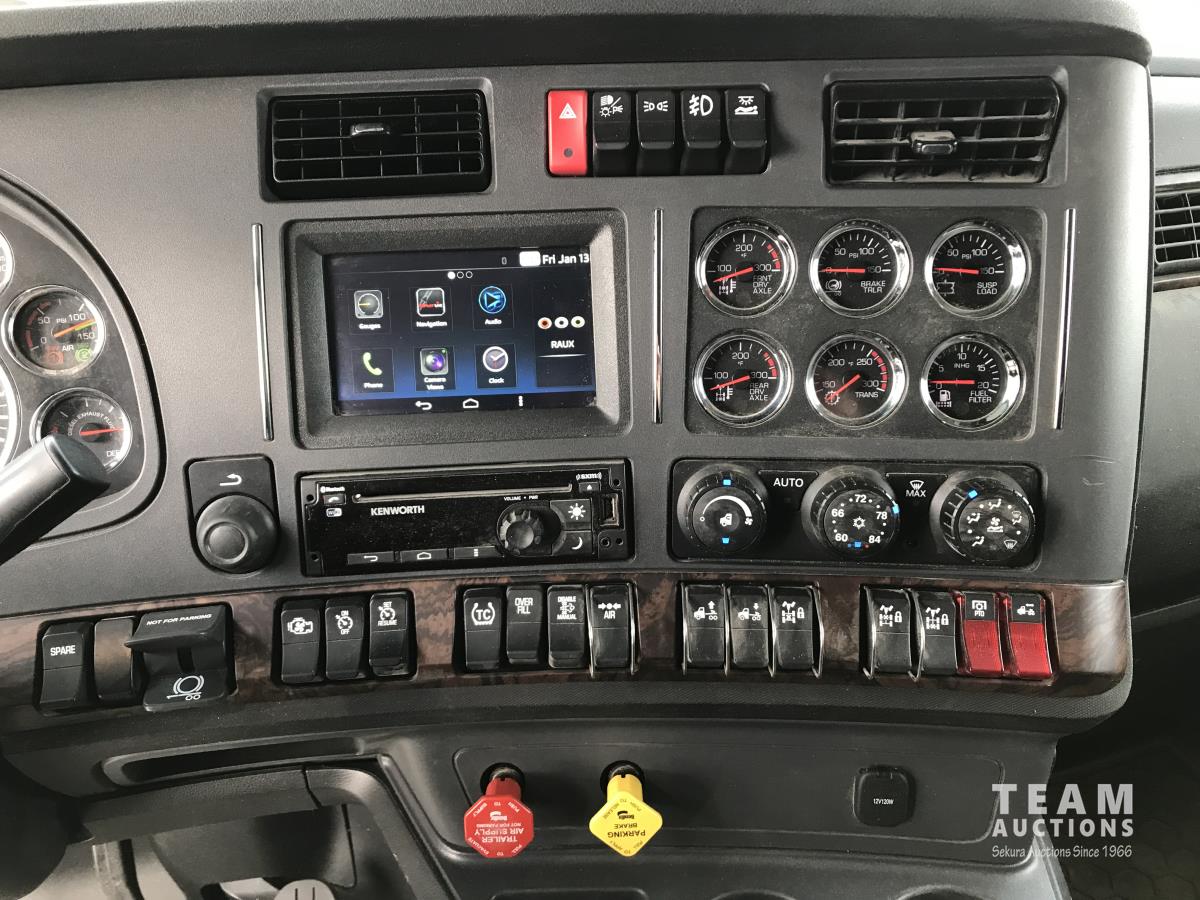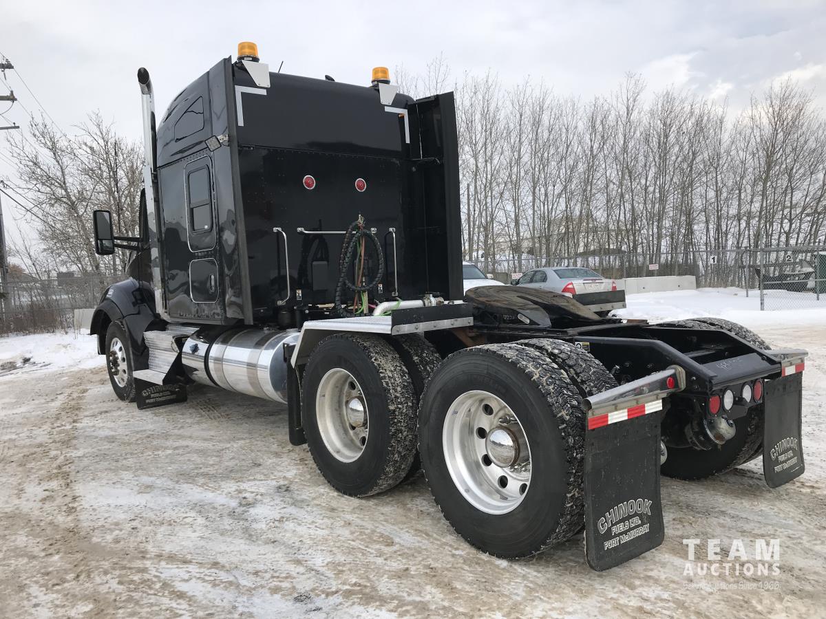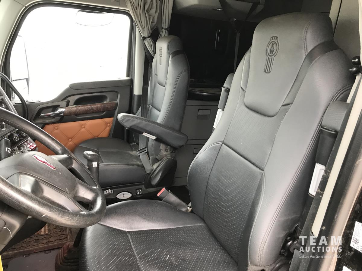 Paccar M-13 6 cylinder 510 HP Eaton Fuller 18 speed manual transmission, integral 72 inch Integral mid rise 76", sleeper, A/C, leather interior, air ride driver seat, 13,000 lb front axle, 46,000 lb rear axles, full lockers, 3.91 ratio, heavy duty driveline, engine and oil pan heater, key fob for door locks, cooler, Holland 5th wheel, PTO, fluid pump, remote greaser for front end, full front windshield privacy curtain, (2) battery shut off switches, on frame boosting terminal,, 11R24.5 tires
