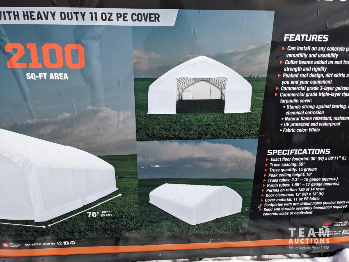 92 TMG Industrial 30 Ft X 70 Ft Straight Wall Storage Shelter (Unused)