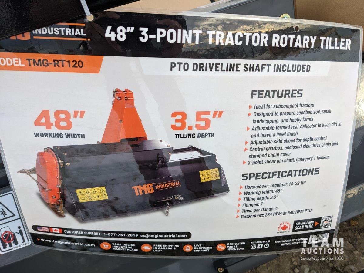 148 TMG Industrial 48 Inch 3 PT Hitch Rotary Tiller (Unused)