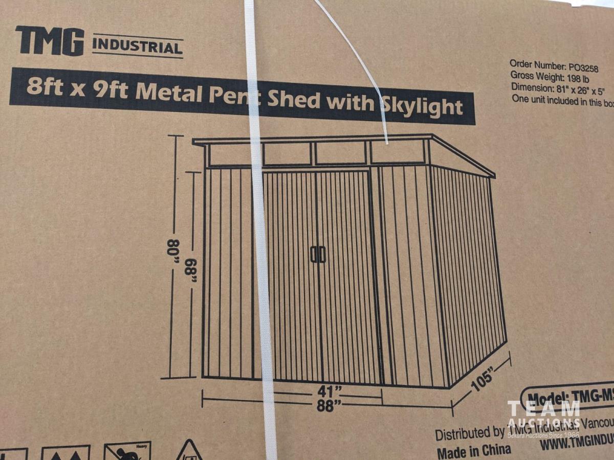 104 TMG Industrial 8 Ft X 9 Ft Galvanized Metal Pent Shed W/Skylight (Unused)