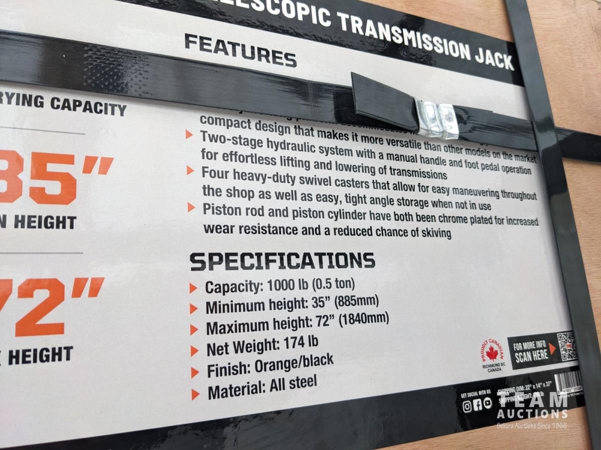 14 TMG Industrial TMG-AJT11 1000 lb Two Stage Telescopic Transmission Jack (Unused)
