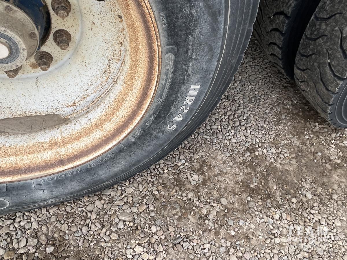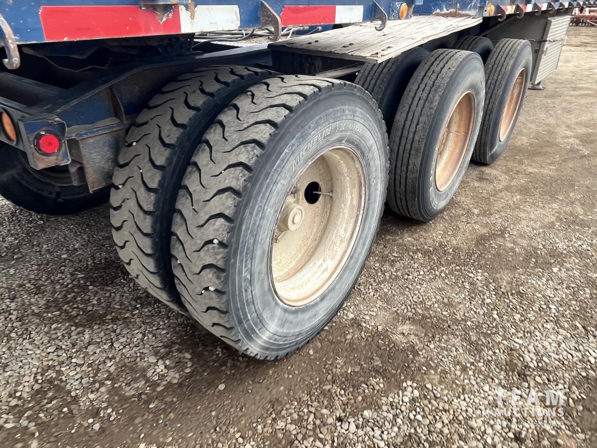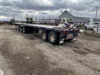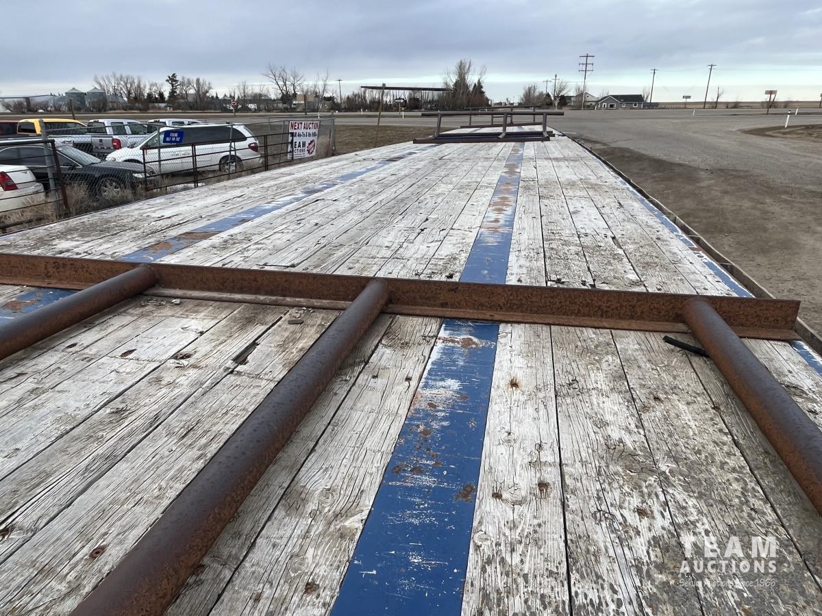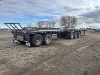 32 ft lead, 28 ft pup, 8 ft 6 inch wide, hay rack front and back, spring suspension, 11R24.5