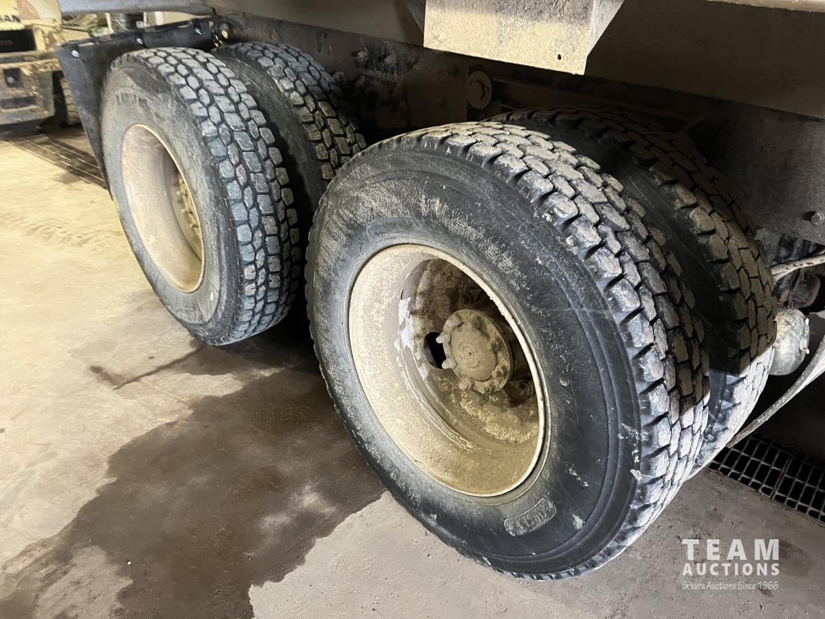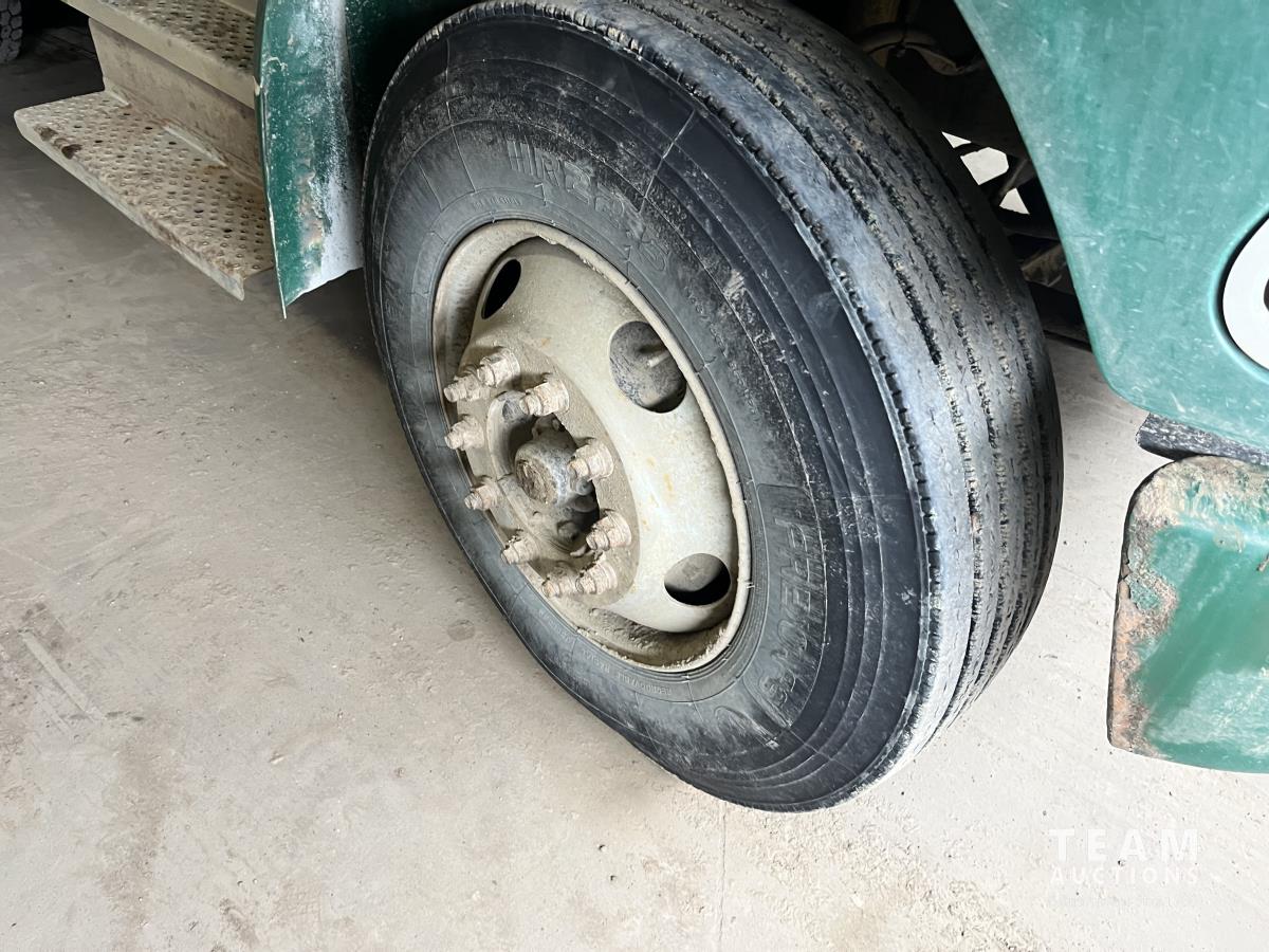 Mercedes OM906 6.4 L L6 260 HP diesel engine, Allison 10 speed automatic transmission, 14 Ft box w/ hoist, pintle hitch, plumbed for pup, spring suspension, 12,000 lb front axle, 40,000 lb rear axles, diff lock, 206 inch WB, 11R22.5 tires