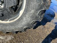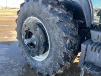 New Holland 865TL loader, Q/A, grapple, 225 HP, 150 PTO HP, diesel engine, 18 speed power shift transmission, cab, ROPS, left hand reverser, rear differential lock, joystick, A/C, upgraded stereo, buddy seat, 540/1000 PTO, 3 point hitch, 4 rear hydraulic outlets, rear wheel weights, 420/85R28 front tires, 520/85R38 rear tires