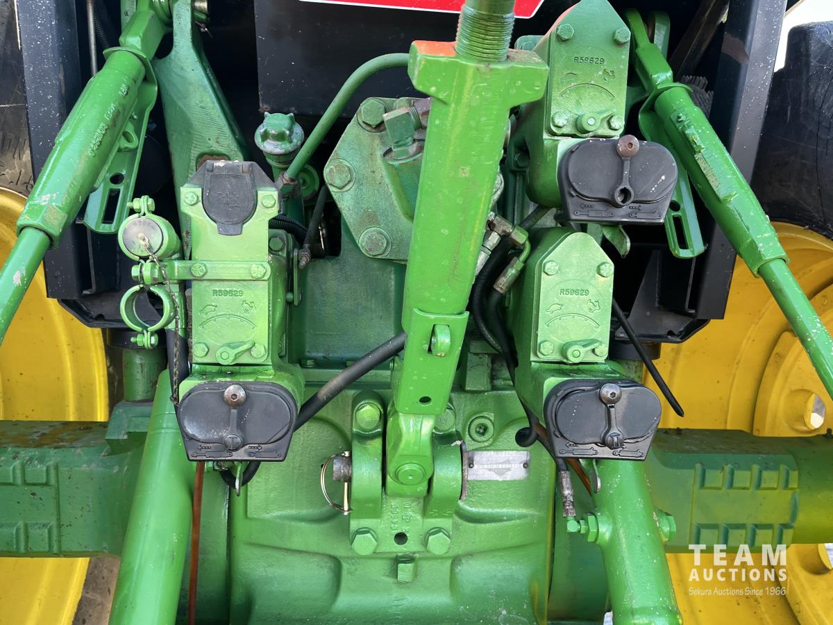 diesel engine, 200 PTO HP, 15 speed power shift transmission, cab, Big 1000 PTO, 3 point quick hitch, 3 rear hydraulic remotes, front weights, duals, 580/70R26 front tires, 520/85R38 rear tires