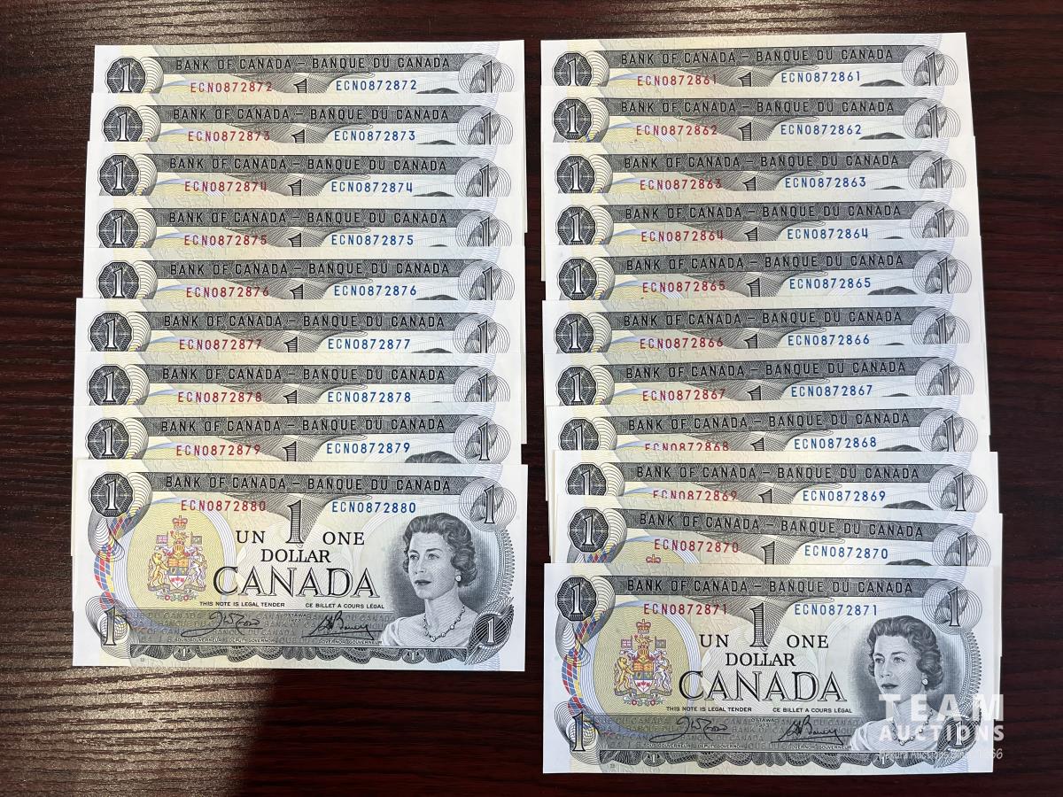 1221 (20) Sequential 1973 Canadian One Dollar Bills