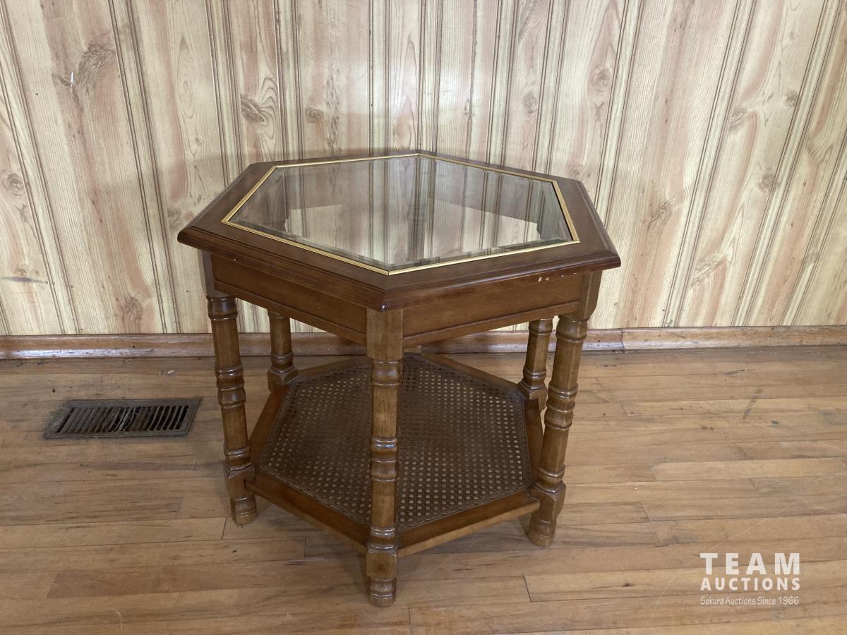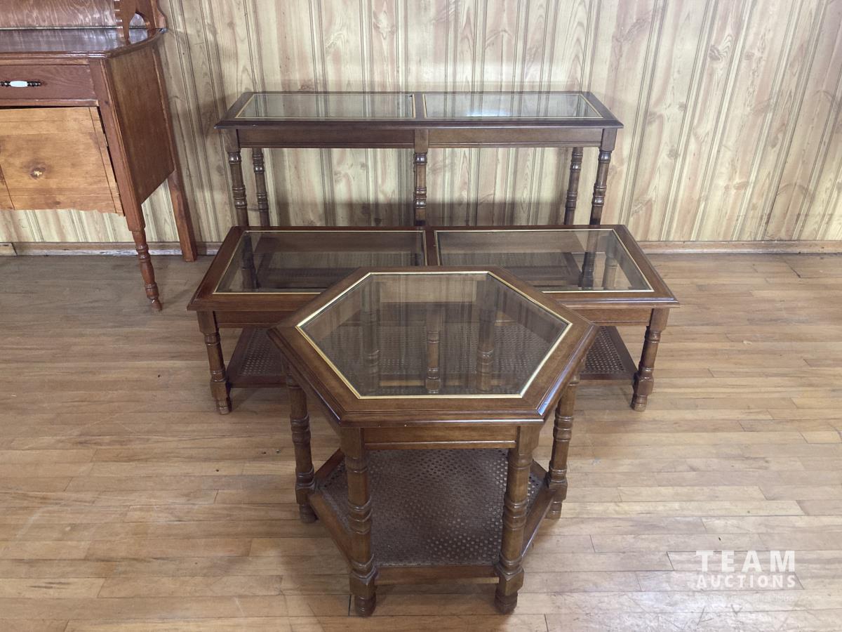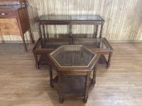 1026 (3) Wooden Glass Top Tables